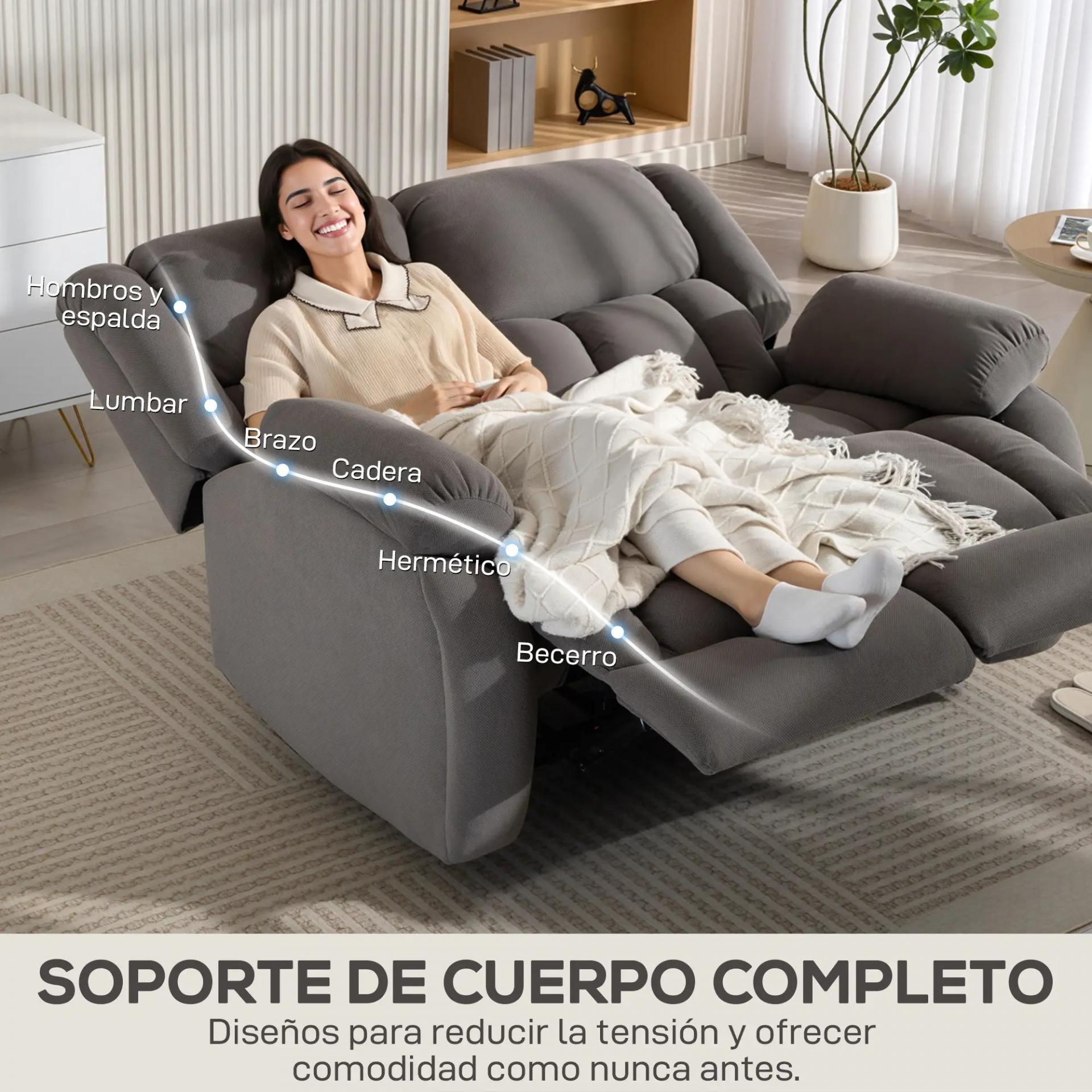 RECLINACIÓN INDEPENDIENTE: Este sillón reclinable permite ajustar los asientos izquierdo y derecho de forma separada hasta 135°, mediante una palanca manual. Ideal para levantar el reposapiés y disfrutar del máximo confort mientras ves la TV o lees