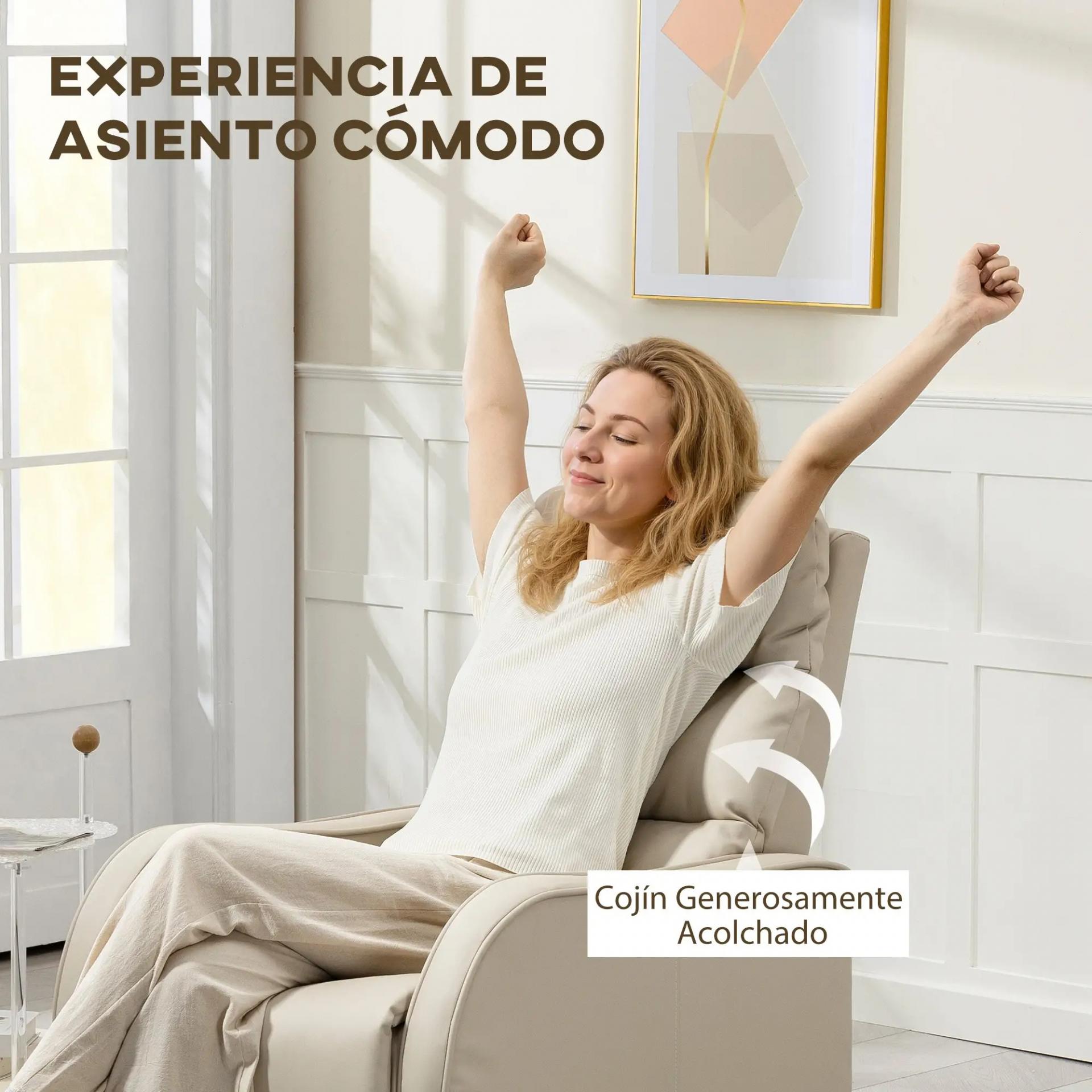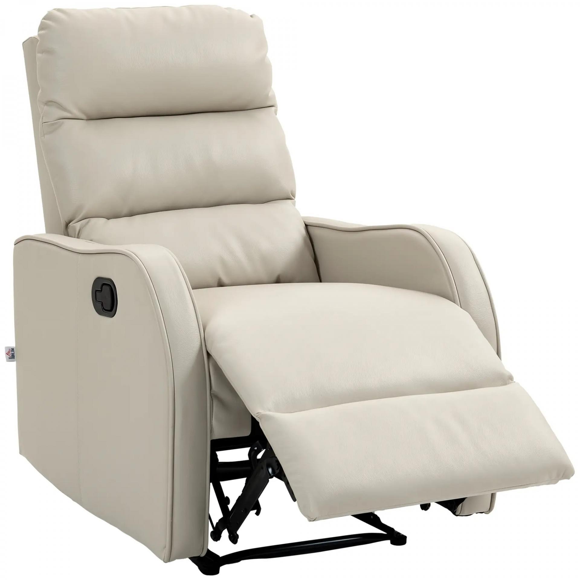 Sillón Relax Reclinable Sofá Relax Tapizado en PU con Reposapiés Retráctil para Dormitorio Salón 65x89x100 cm Crema