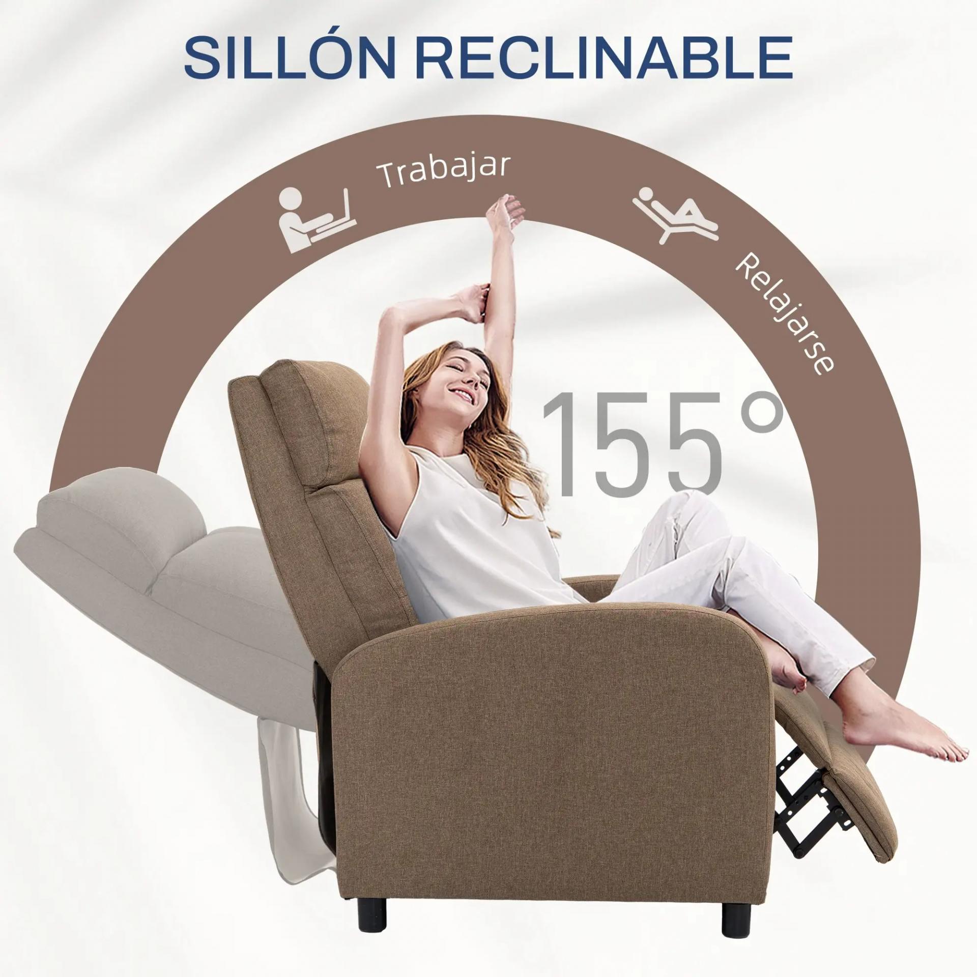 Sillón Reclinable Manual Sofá Individual con Reclinación hasta 155º Carga 150 kg Marrón