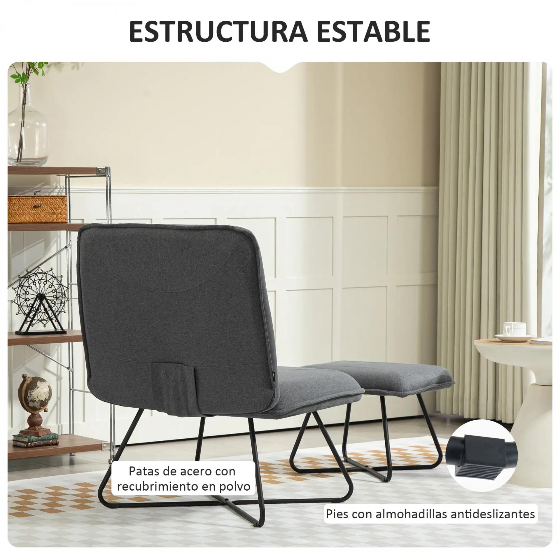 CONJUNTO DE DOS PIEZAS: Este conjunto incluye una butaca sin brazos y un reposapiés a juego, ambos diseñados para ofrecer el máximo confort. El sillón de salón tiene un asiento amplio de 68x55 cm y el reposapiés es perfecto para que estires las piernas