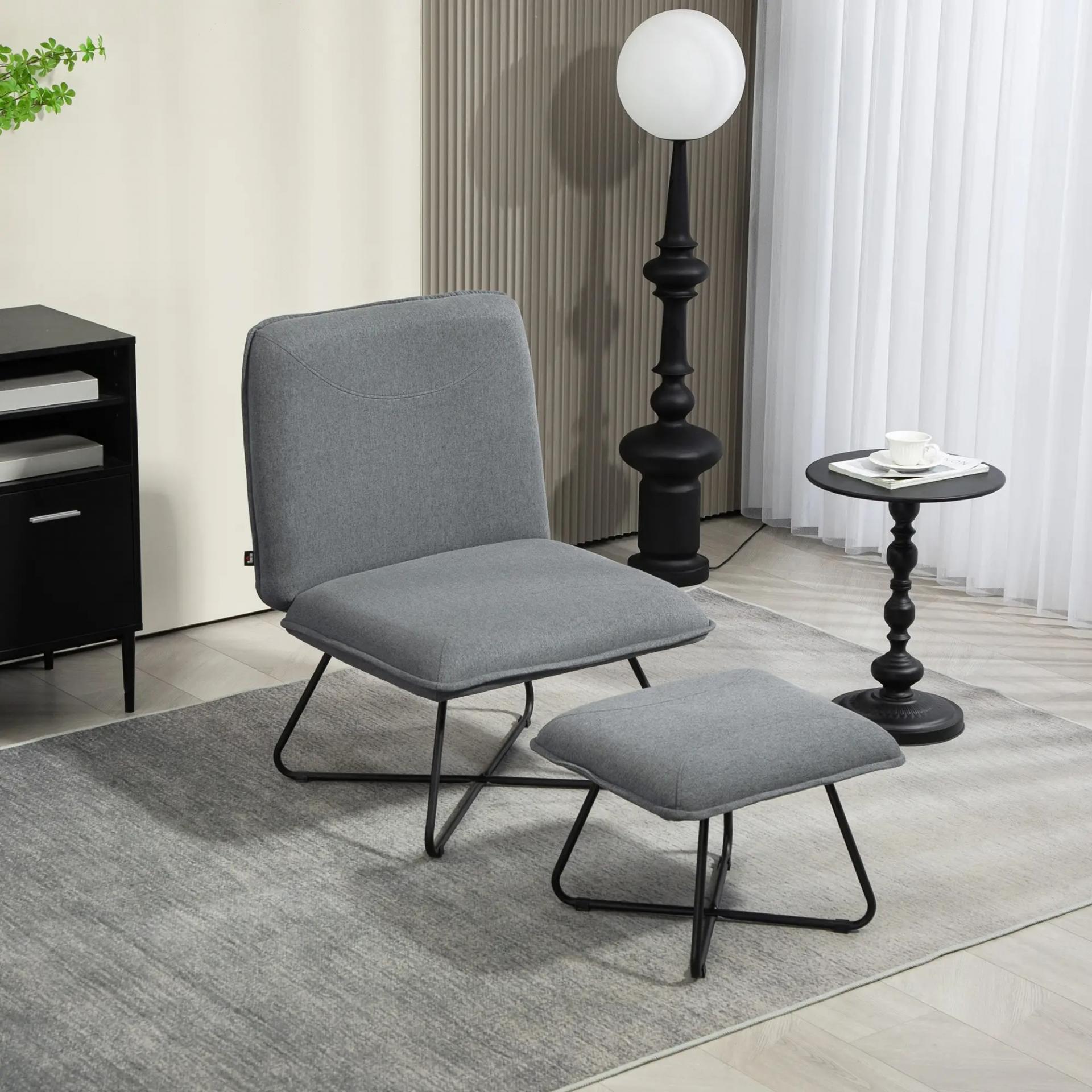 Butaca con Reposapiés Sillón para Lectura con Patas de Acero en Forma de Cruz Gris Oscuro