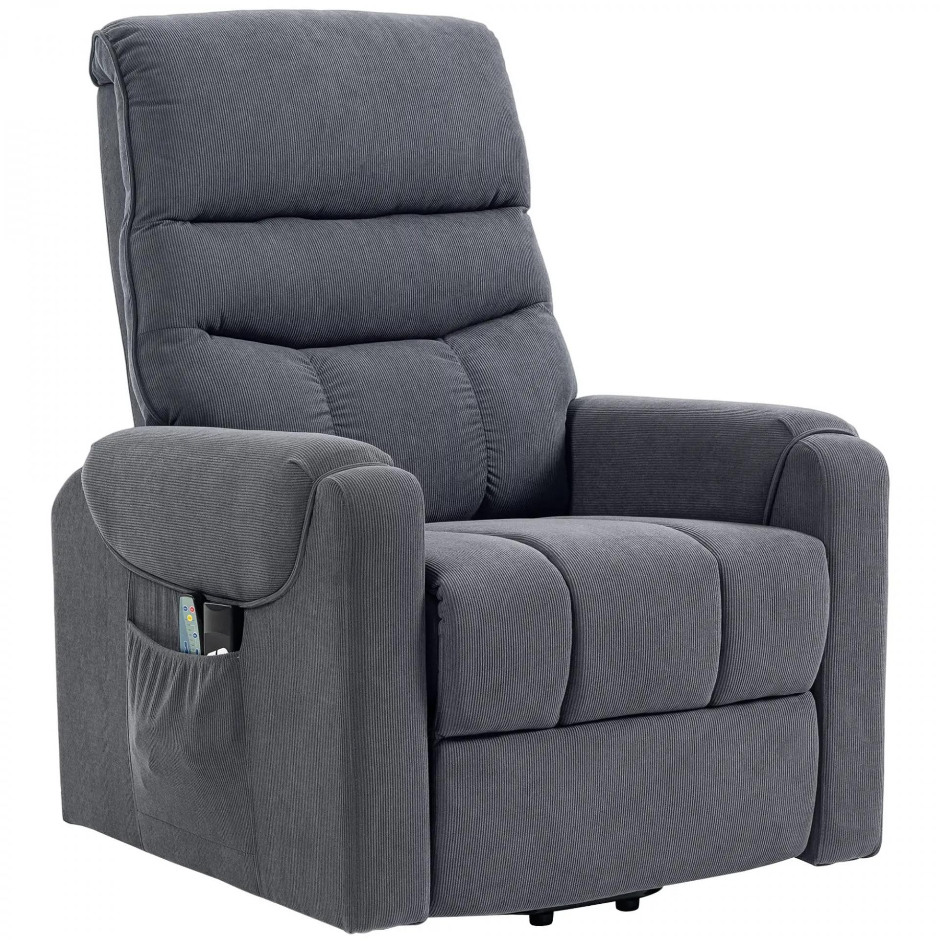 Sillón Levanta Personas con 8 Punto de Masaje Reposapiés Mando a Distancia y Bolsillo Lateral 83x92x110 cm Gris