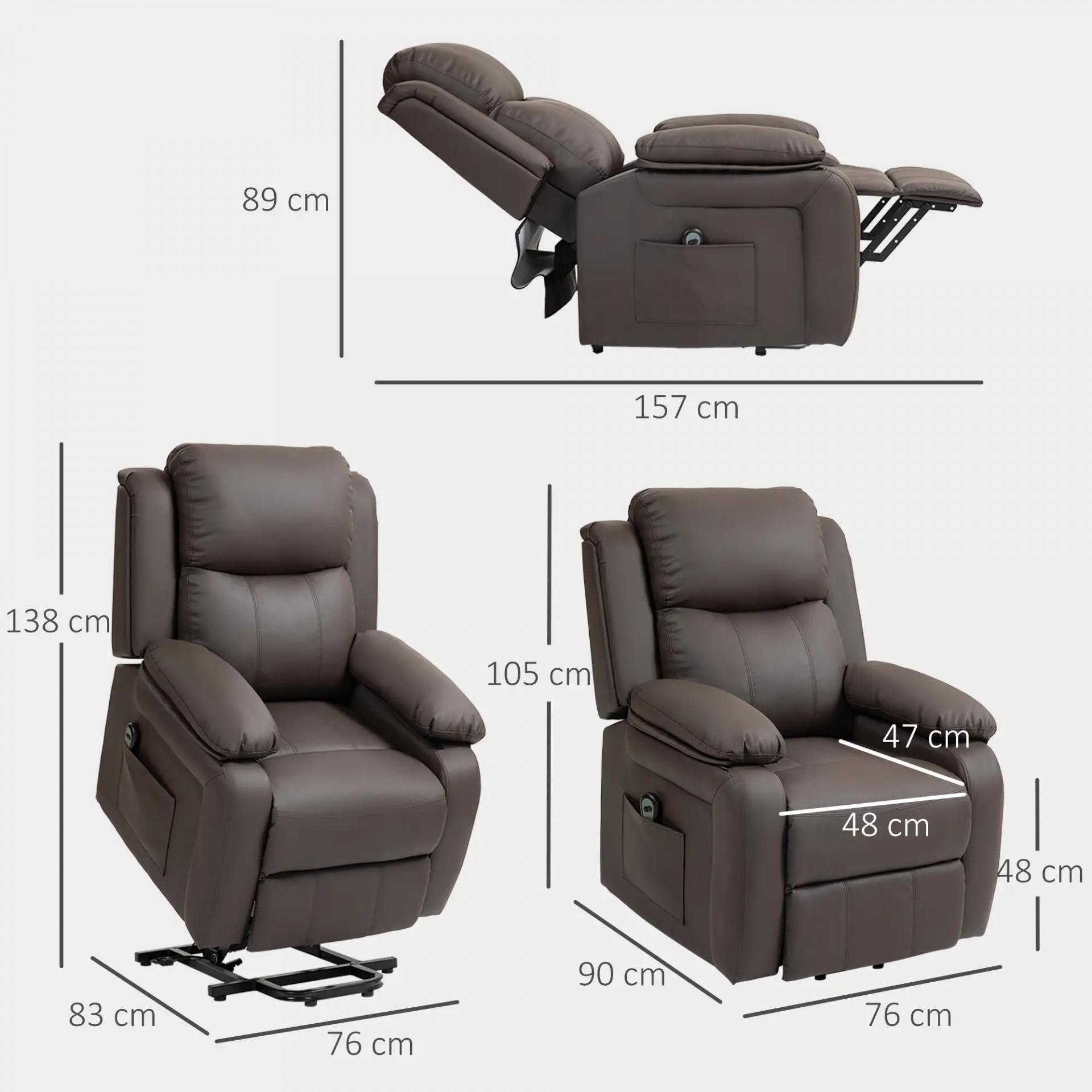 Sillón Relax Levanta Personas Sillón Elevador con Control Remoto Reclinación 160° Reposapiés 76x90x105cm Marrón