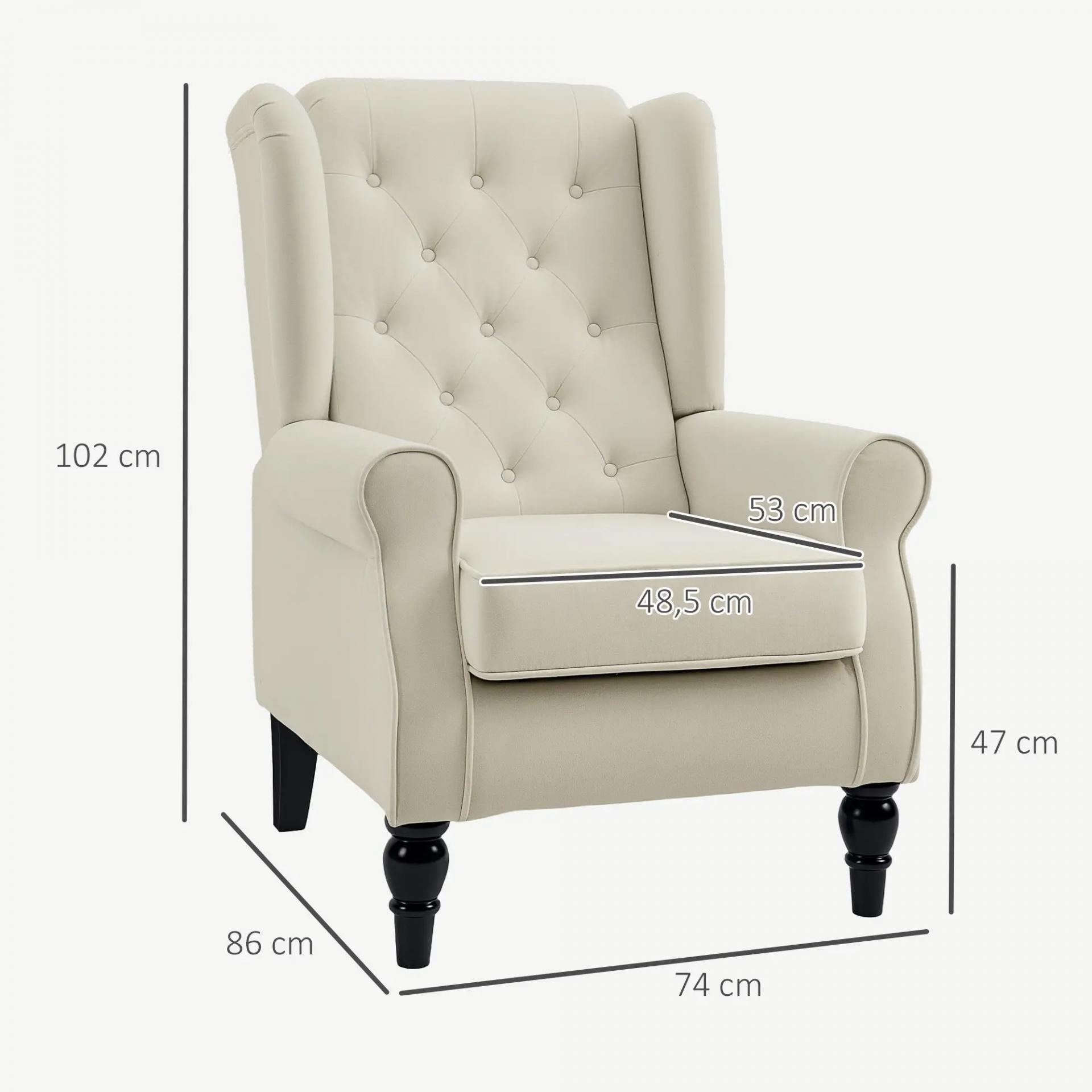Sillón de Salón con Reposacabezas y Patas de Madera Butaca Carga 160 kg para Dormitorio Oficina Sala de Estar Crema