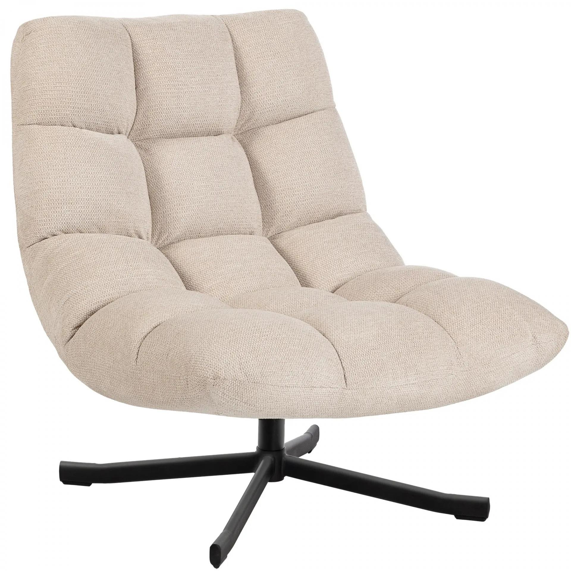 Butaca de Salón Giratoria Moderna Tapizada en Chenilla con Asiento Ancho Base Cruz y Patas de Acero Sillón Relax Crema