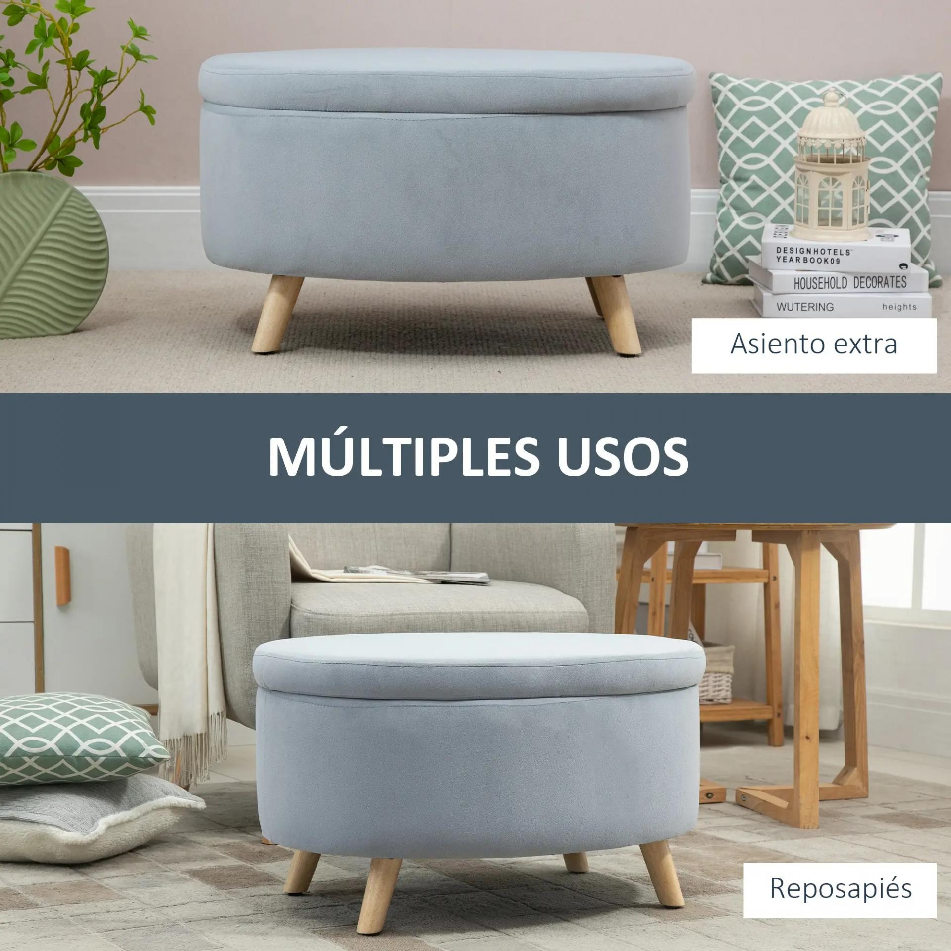 DISEÑO MODERNO Y ACOGEDOR: Puff almacenaje con forma ovalada, tapizado en suave tela gris y patas de madera natural, perfecto para crear un rincón cálido en entrada, dormitorio o sala de estar