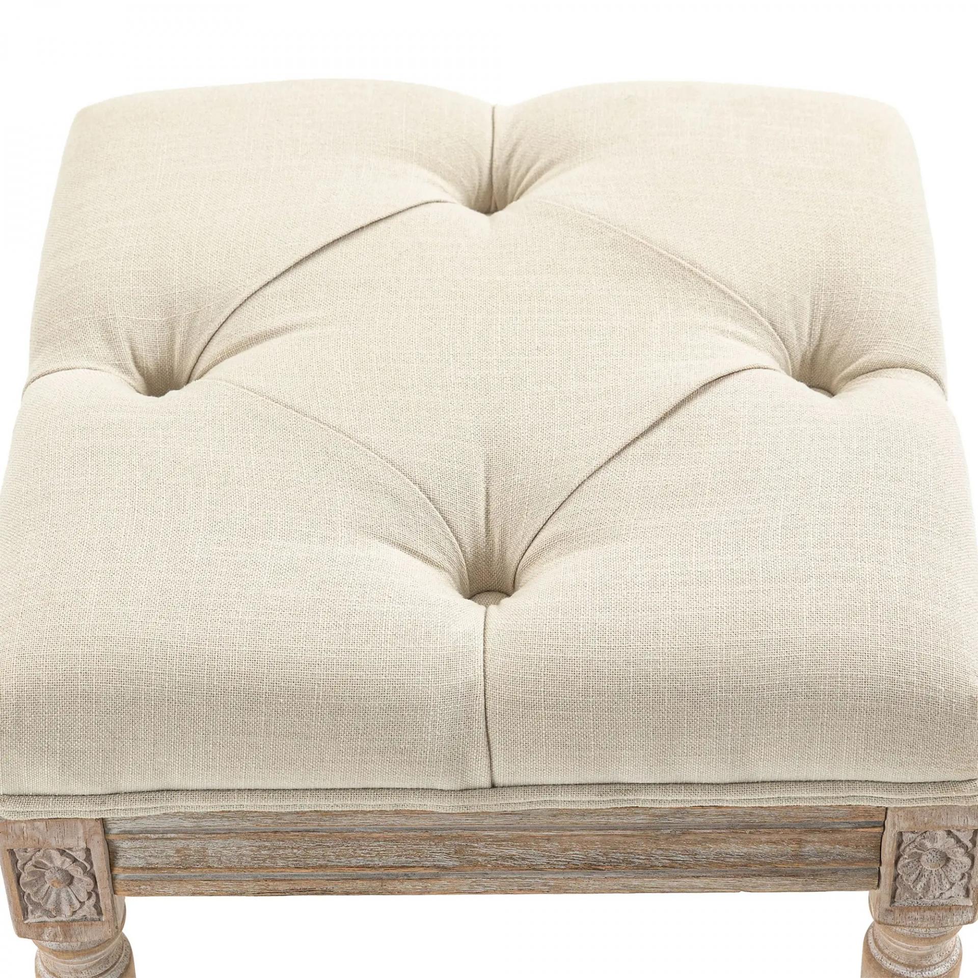 - DISEÑO VINTAGE: Esta banqueta para dormitorio aportará un toque de elegancia a tu espacio. Con asiento tapizado con botones capitoné y patas cilíndricas de madera cepillada con detalles tallados, ofrece un aspecto elegante y refinado