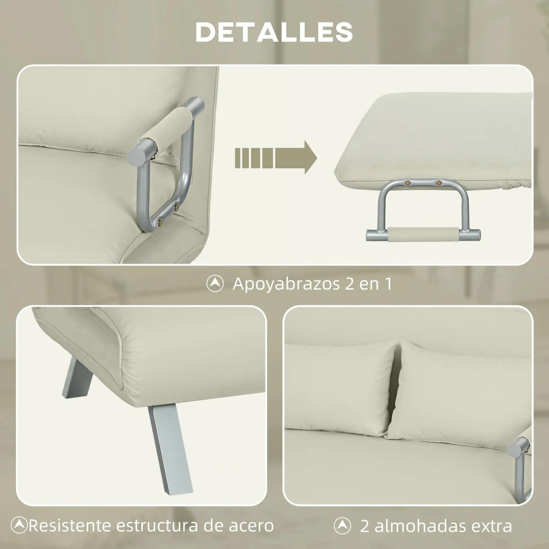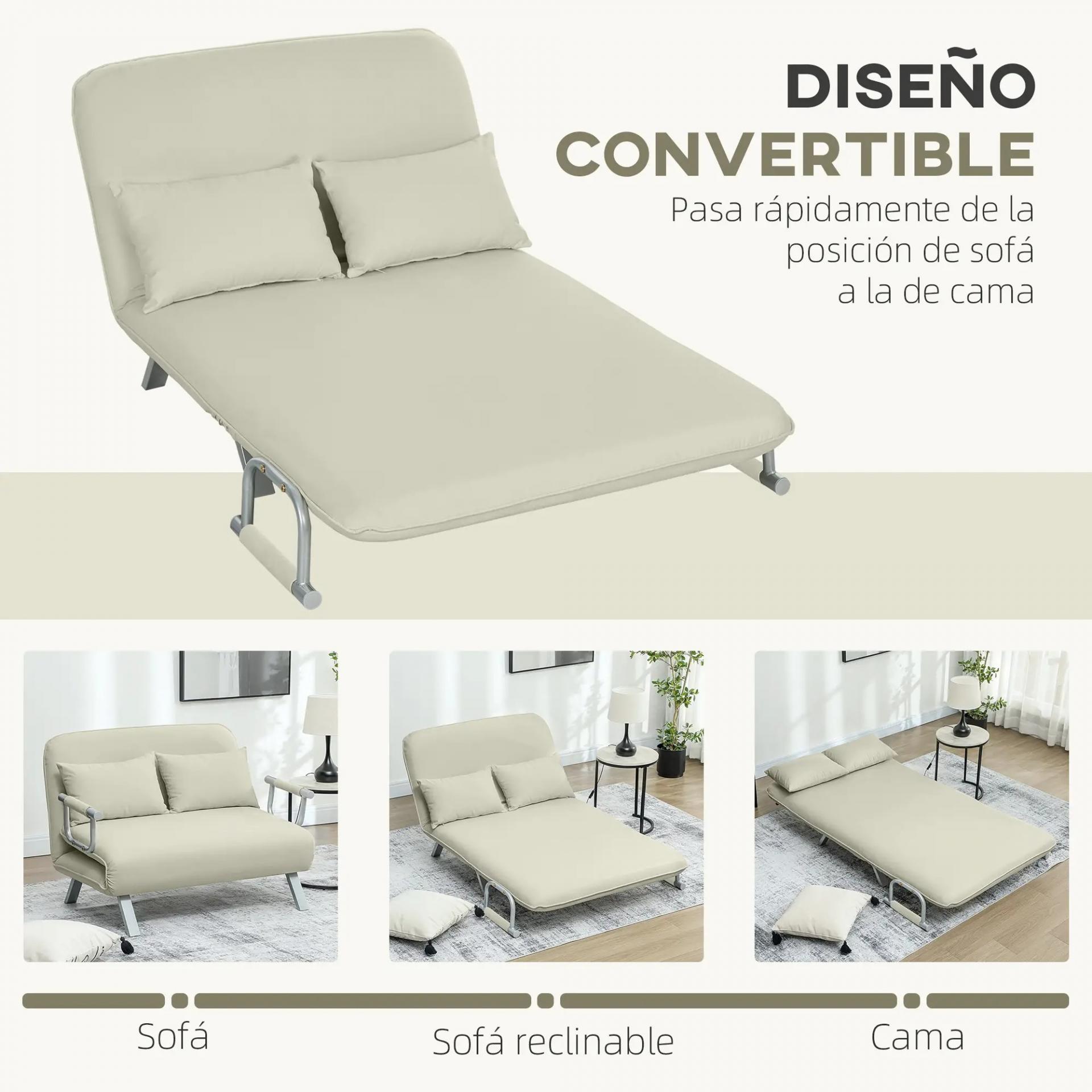 DISEÑO MODERNO Y ELEGANTE: Este sofá cama presenta un color crema, detalles metálicos sofisticados y un cojín decorativo. Perfecto para cualquier estilo de decoración, aporta un toque de elegancia y sofisticación a tu espacio