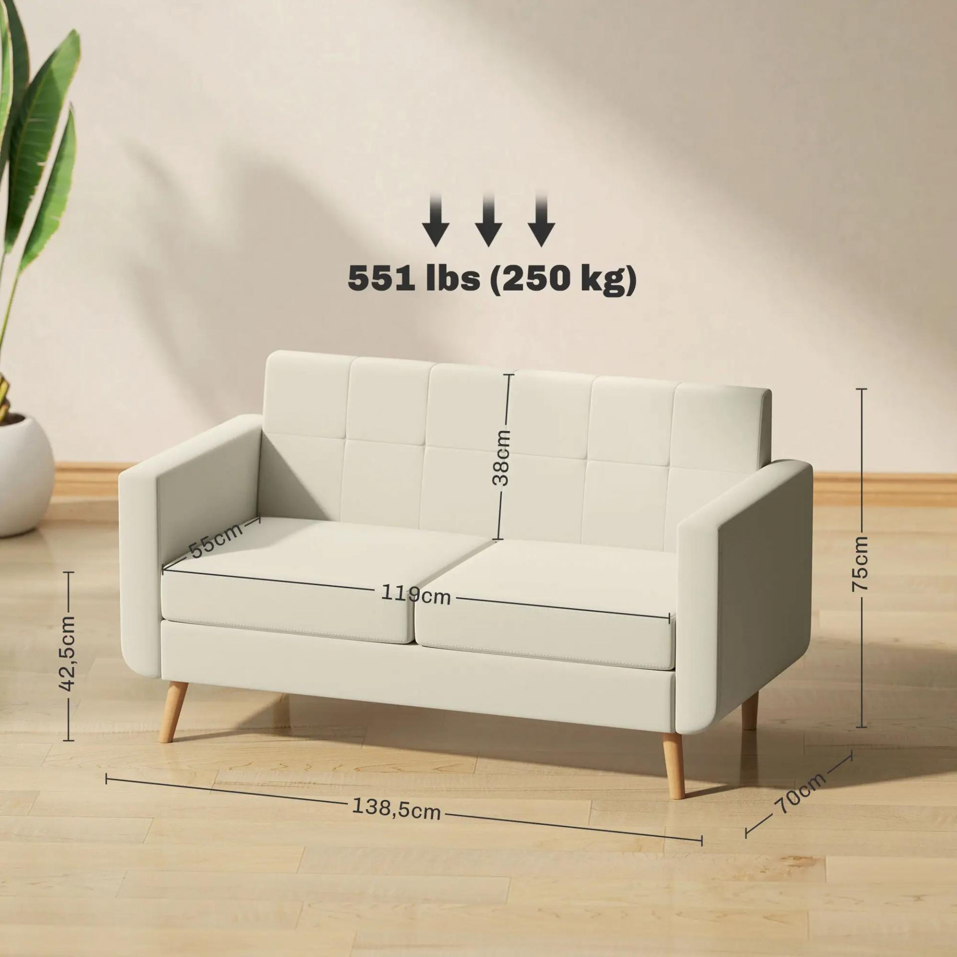Sofá de 2 Plazas Tapizado en Lino con Reposabrazos y Patas de Madera Carga 250 kg para Dormitorio Oficina Crema