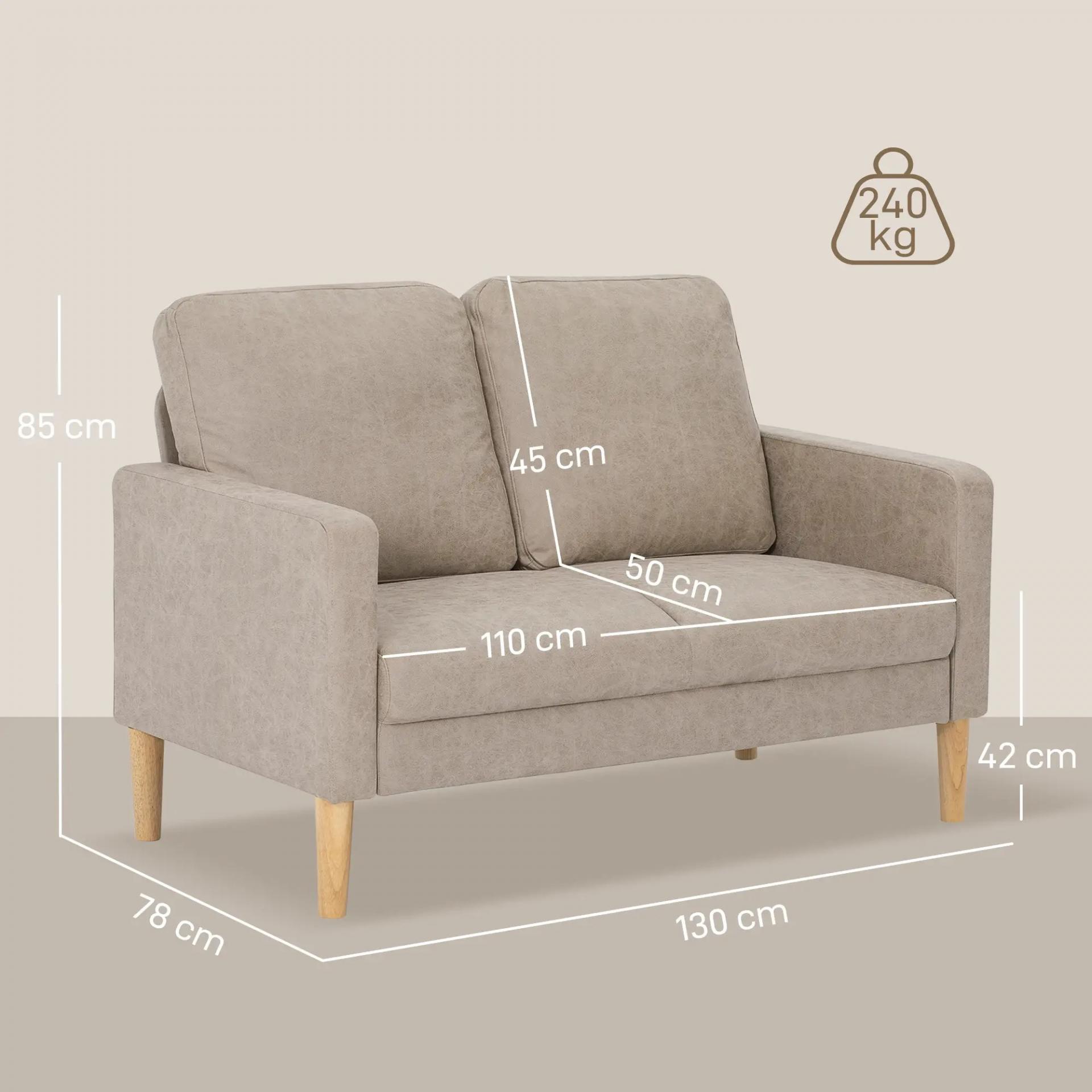Sofá de 2 Plazas Tapizado en Microfibra con Patas de Madera Reposabrazos 130x78x85 cm Crema