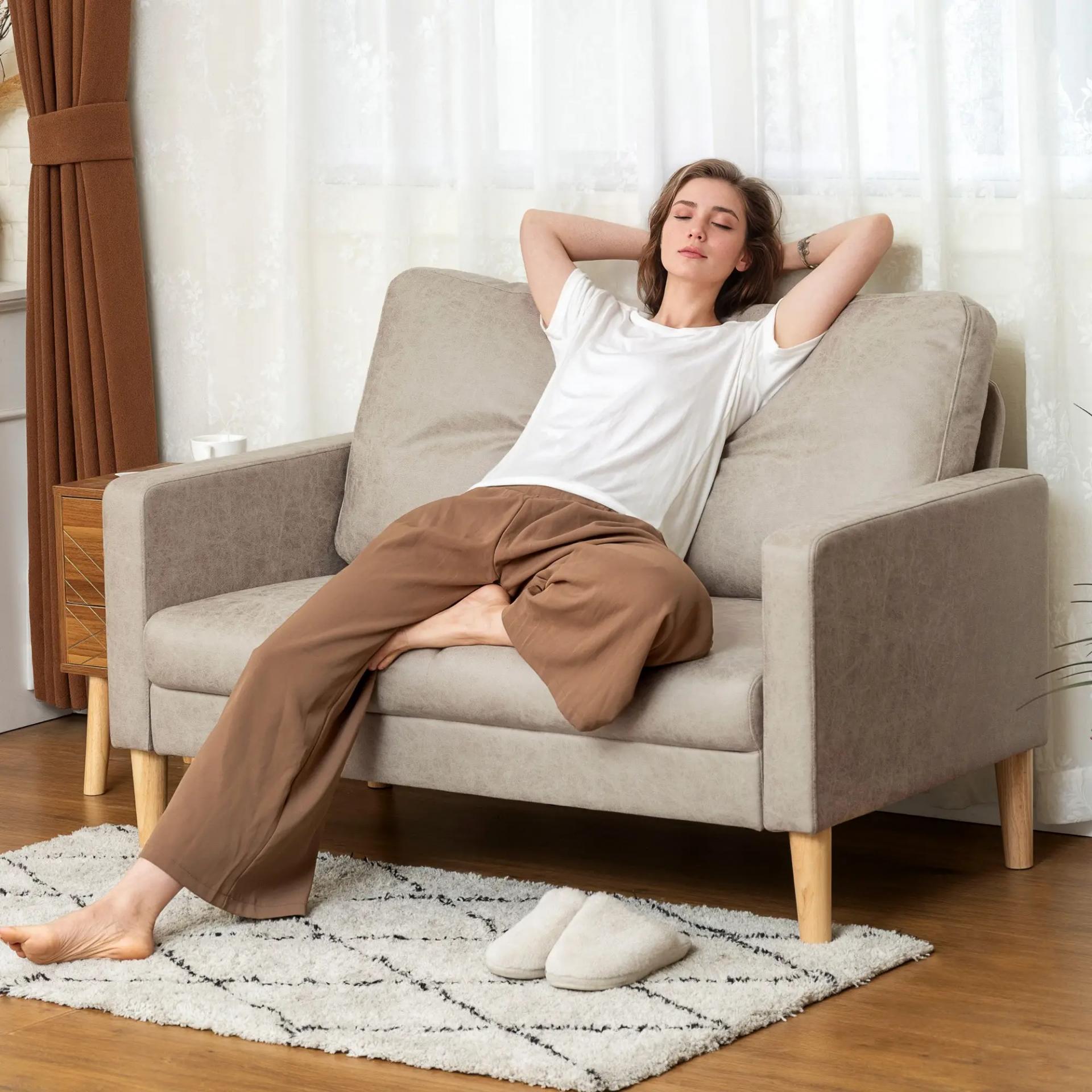 - ESTRUCTURA RESISTENTE Y ESTABLE: Este sofá para salón u oficina cuenta con patas de madera de caucho y topes antideslizantes que garantizan firmeza. Soporta hasta 240 kg, ofreciendo un asiento seguro y duradero para el día a día
