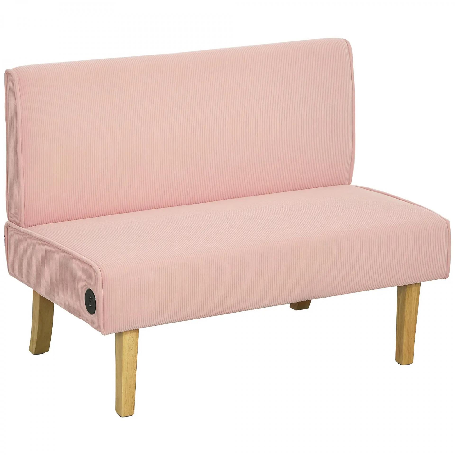 Sofá de 2 Plazas Tapizado en Pana con 2 Puertos USB 1 Puerto Tipo-C y Patas de Madera Carga 240 kg 110x60x85 cm Rosa