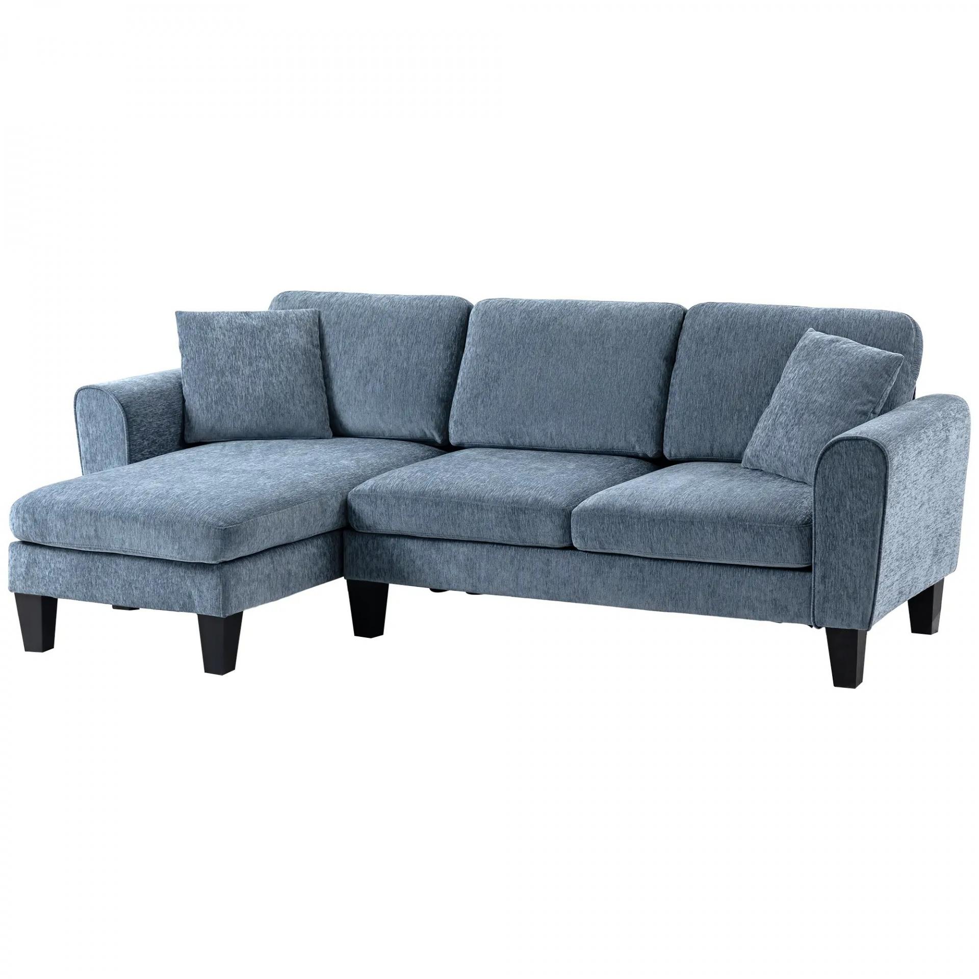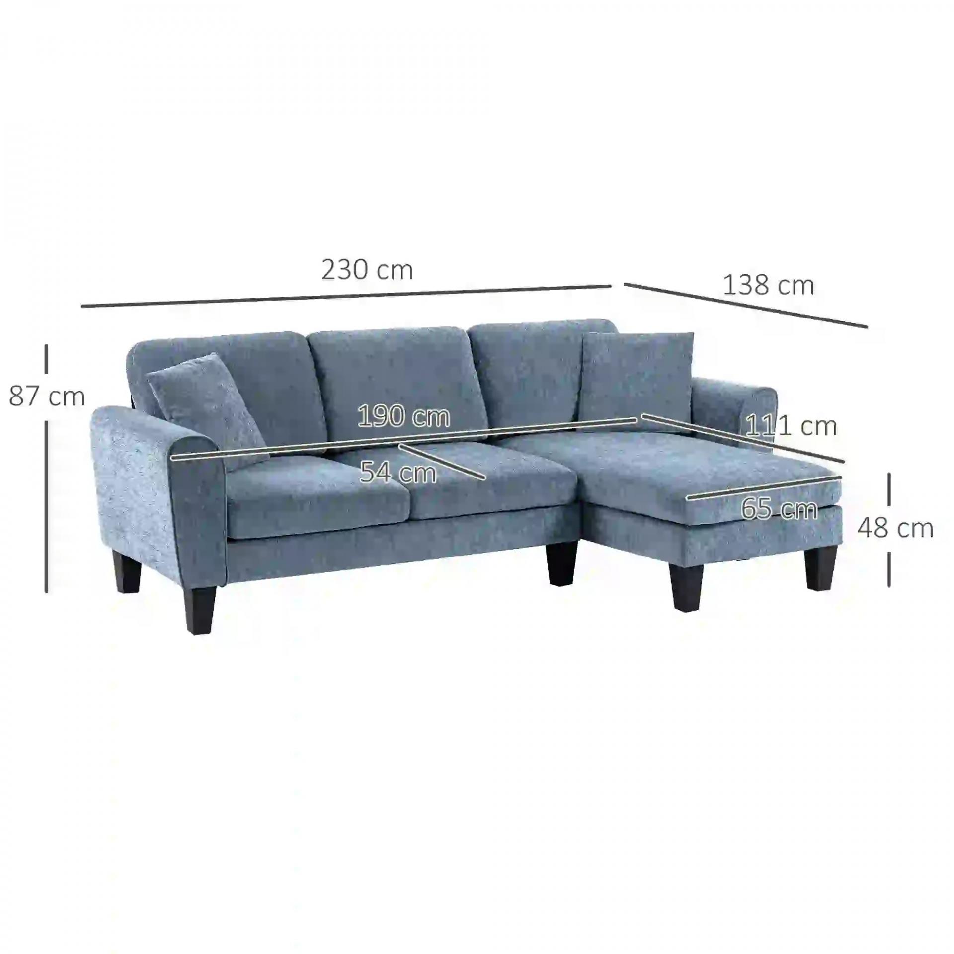 Sofá Rinconera Chaise Lounge Reversible en Forma de L con 2 Cojines Carga 200 kg 230x138x87 cm Azul Oscuro