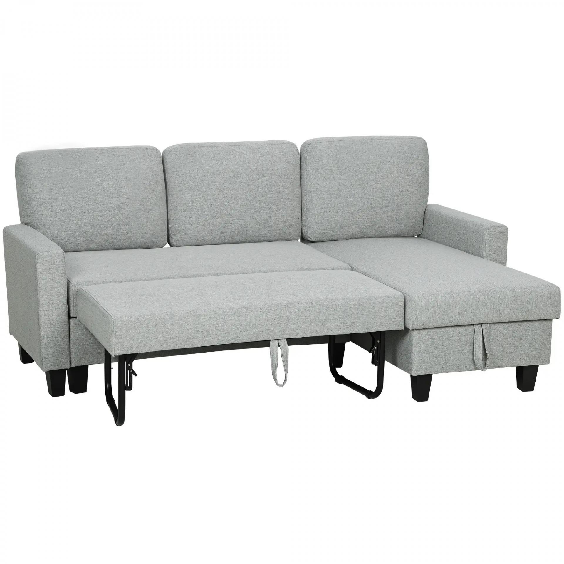 Sofá Cama Chaise Longue de 3 Plazas Chaise Longue Reversible Ambos Lados con Almacenaje con Fundas Removibles Gris