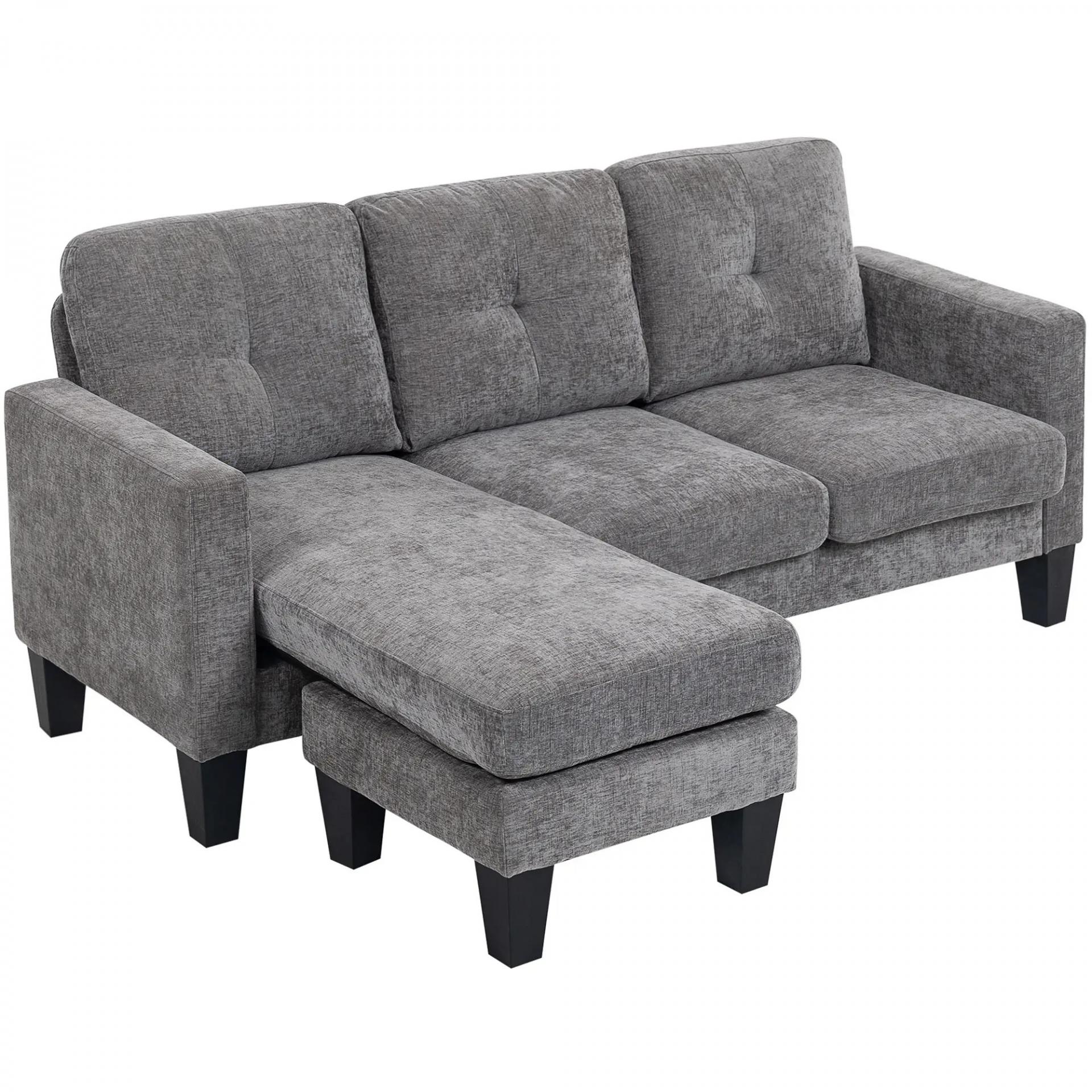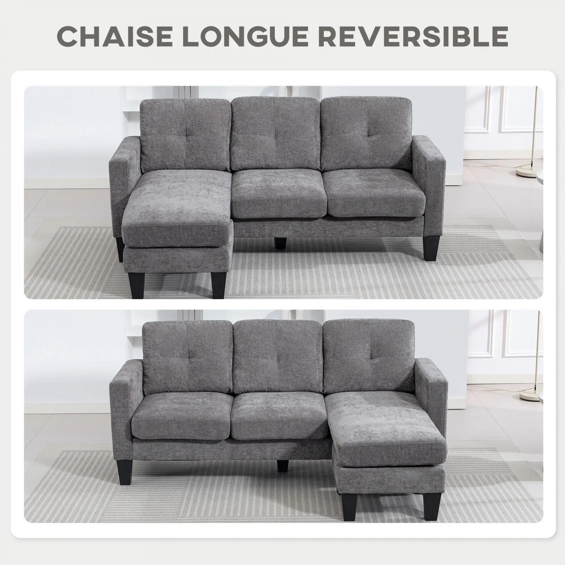 Sofá Chaise Longue Reversible con Estructura de Acero Tapizado en Chenilla 186x130x84cm Gris Oscuro