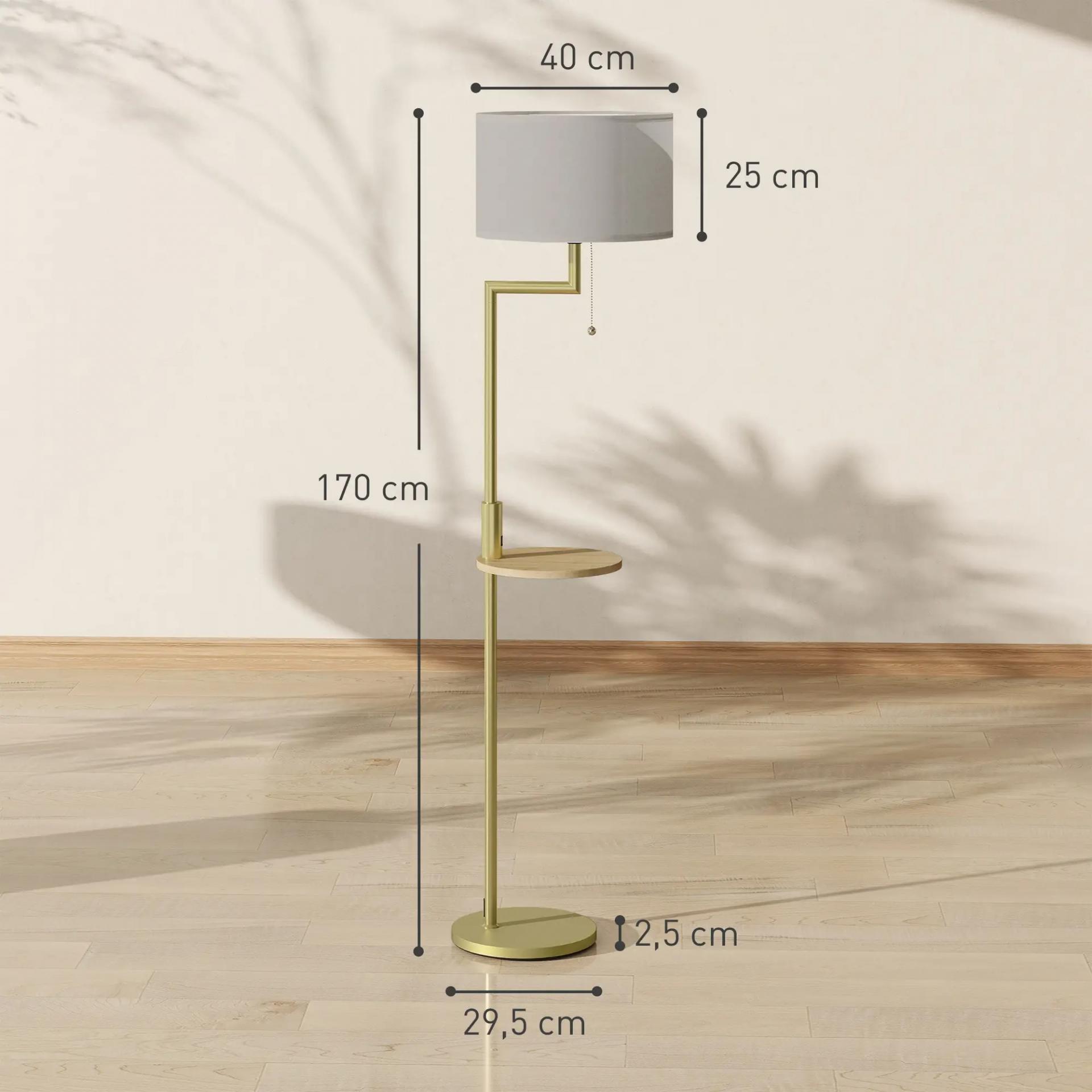 DISEÑO MODERNO Y COLOR DORADO ELEGANTE: Esta lámpara de pie de HOMCOM destaca por su estructura en color dorado, estante de bambú claro y pantalla beige. Ideal para añadir calidez y sofisticación al salón, dormitorio, despacho u otros espacios del hogar