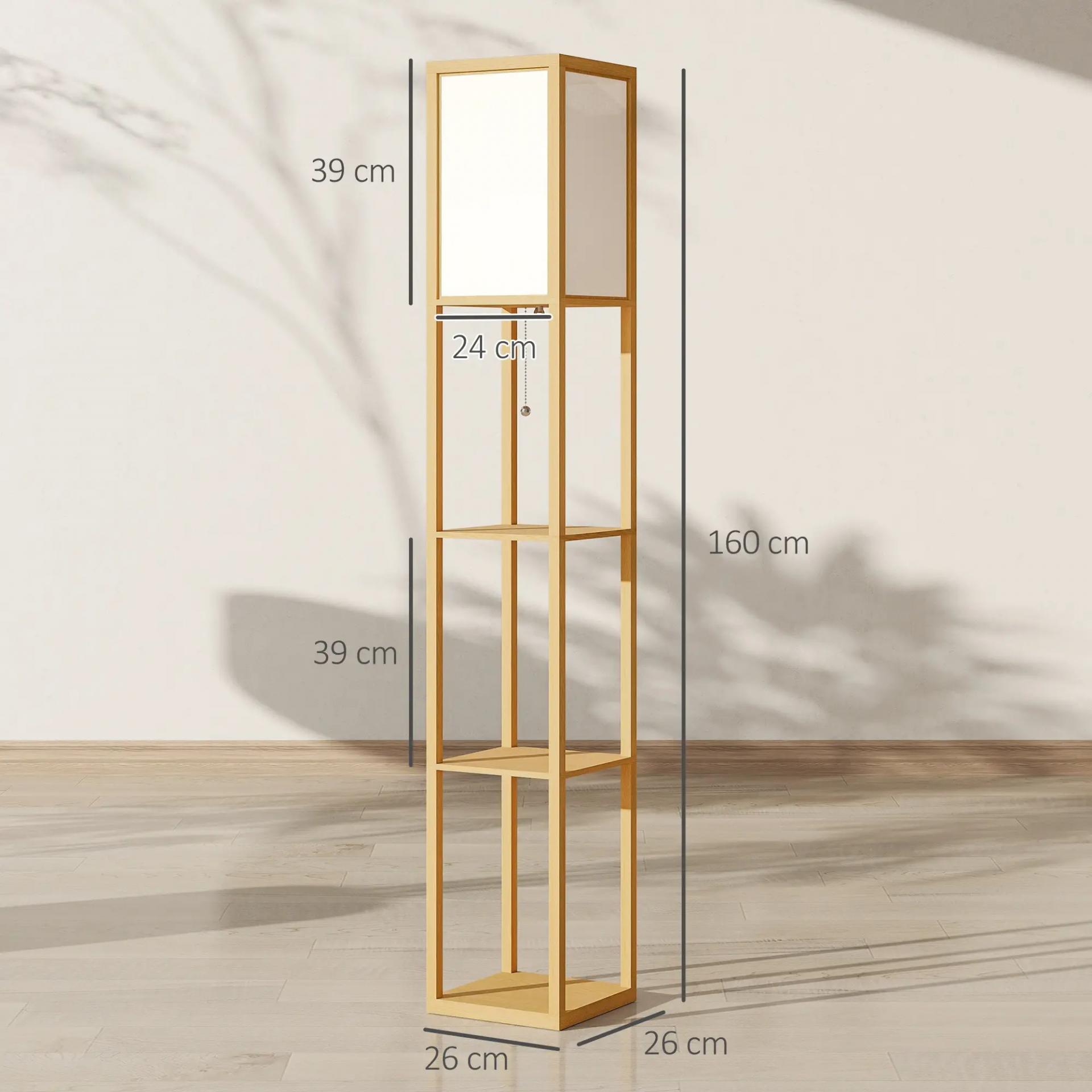 Lámpara de Pie con Estantes de Almacenaje Bombilla E27 para Salón Dormitorio Oficina Natural