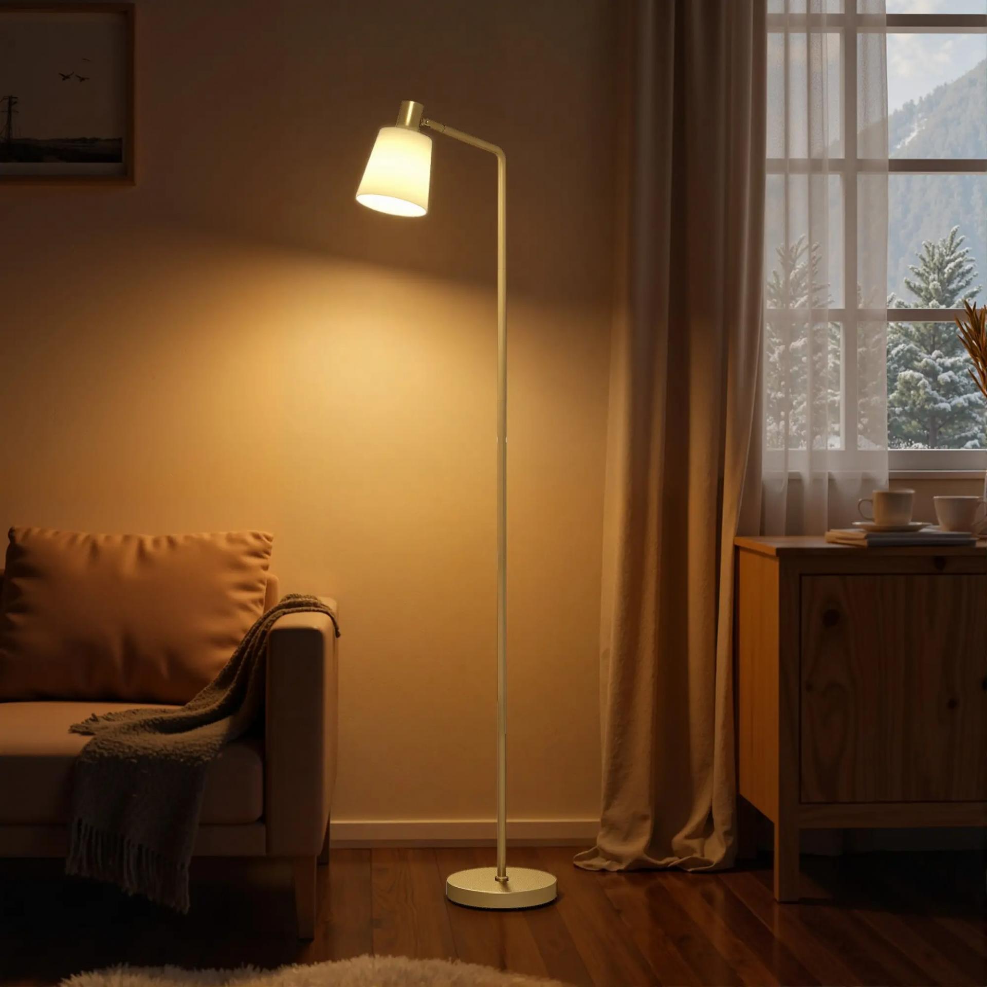 - ESTILO MODERNO Y ELEGANTE: Con estructura dorada y pantalla blanca, esta lámpara de pie para salón se integra en decoraciones minimalistas o sofisticadas, aportando un toque elegante y armonioso a cualquier habitación de tu hogar