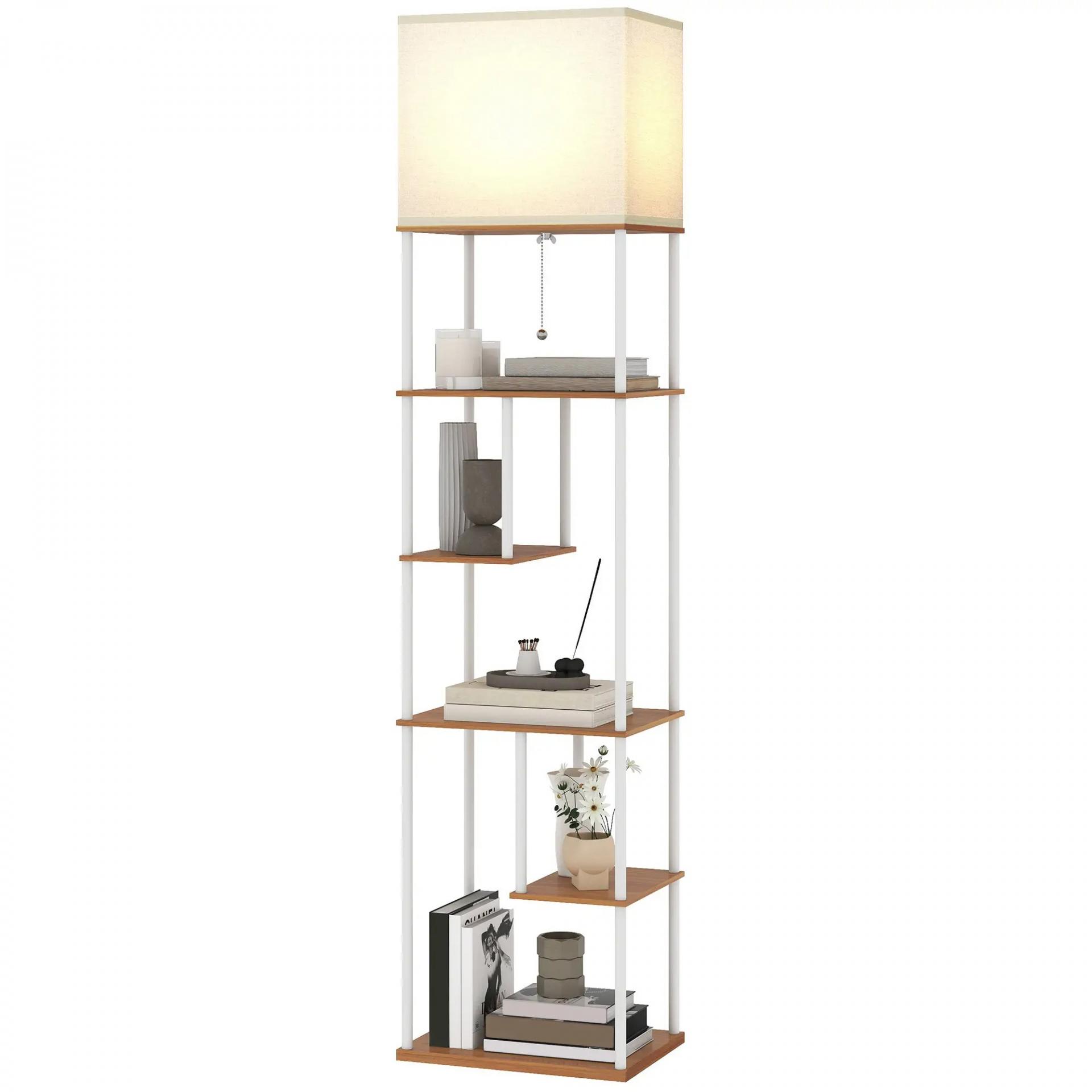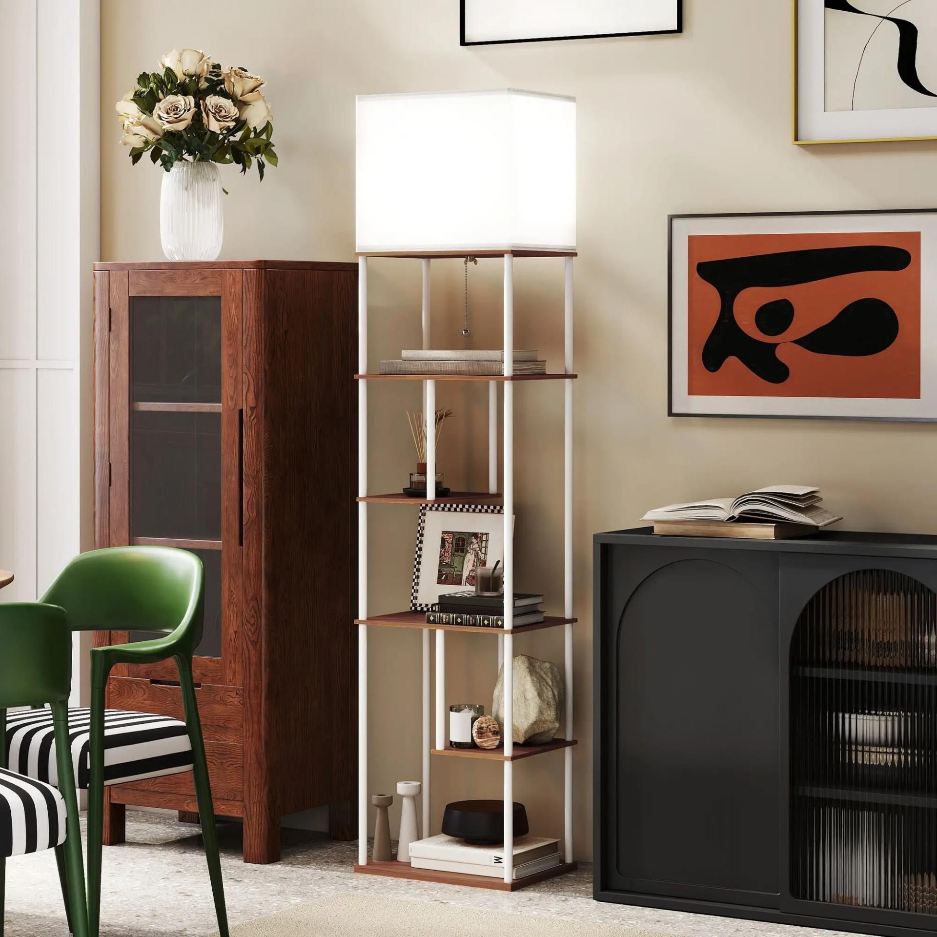 - ESTANTES ASIMÉTRICOS MULTIUSO: Esta lámpara de pie para salón con estantes incluye cinco niveles escalonados, ideales para guardar libros, colocar plantas o exhibir decoraciones. Una solución funcional que combina iluminación y organización en cualquier rincón