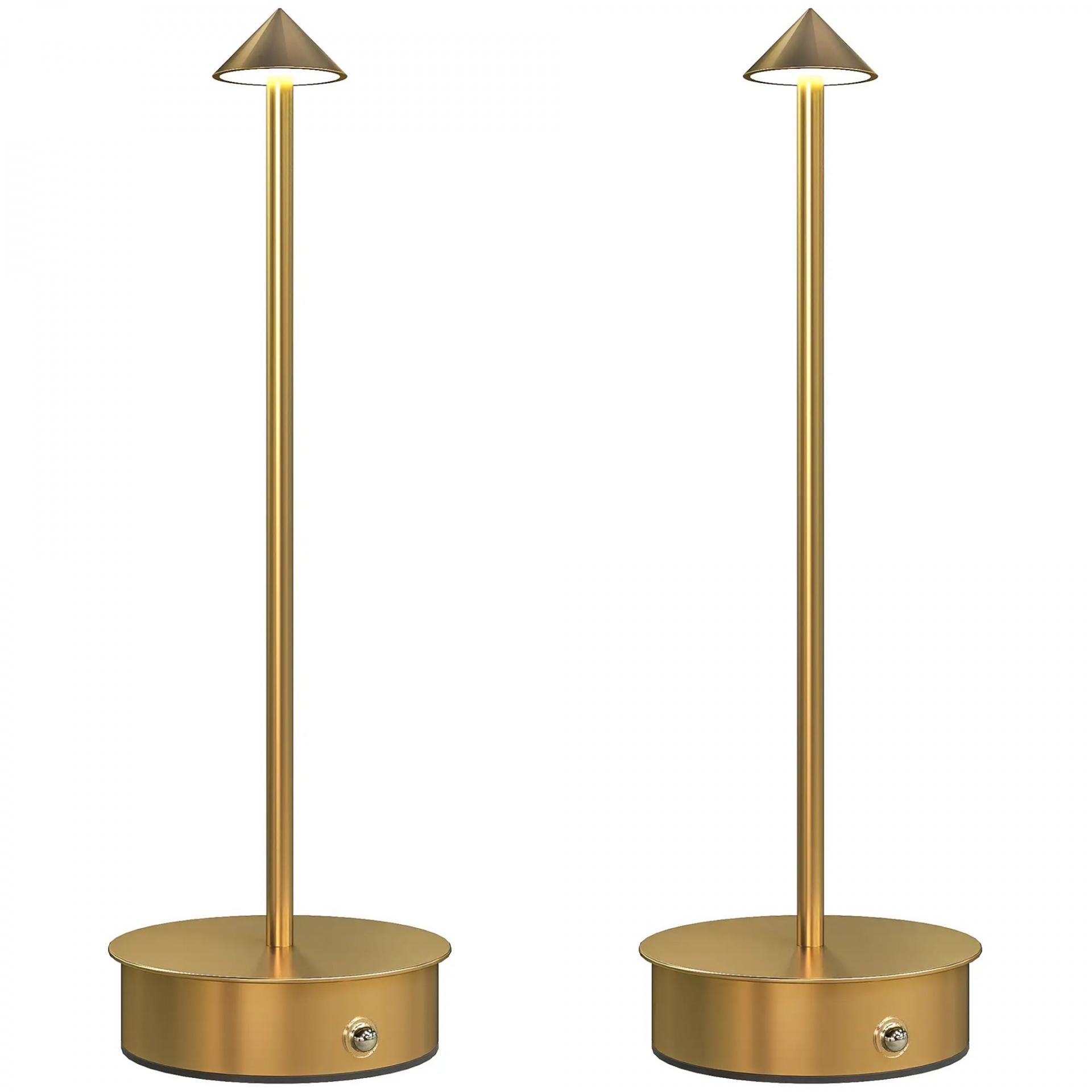 Juego de 2 Lámparas de Mesa LED Recargables con USB y Control Táctil y Luz Regulable Ø10x30 cm Dorado