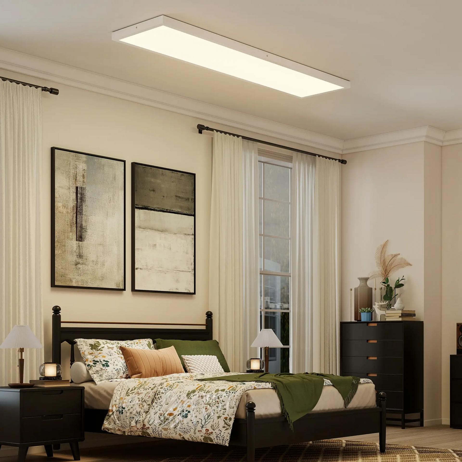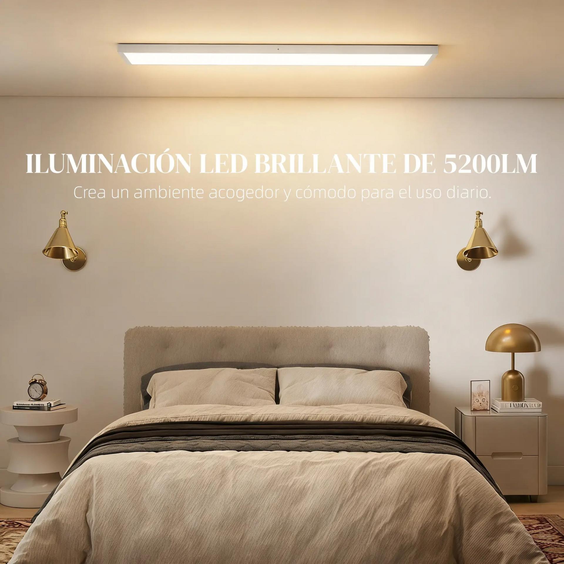 - CONJUNTO DE CUATRO: Distribuye un juego de cuatro lámparas de techo, cada una de 120x30 cm (LxAN), perfectas para iluminar tu casa y lograr una luz uniforme en áreas de 15–45 m²