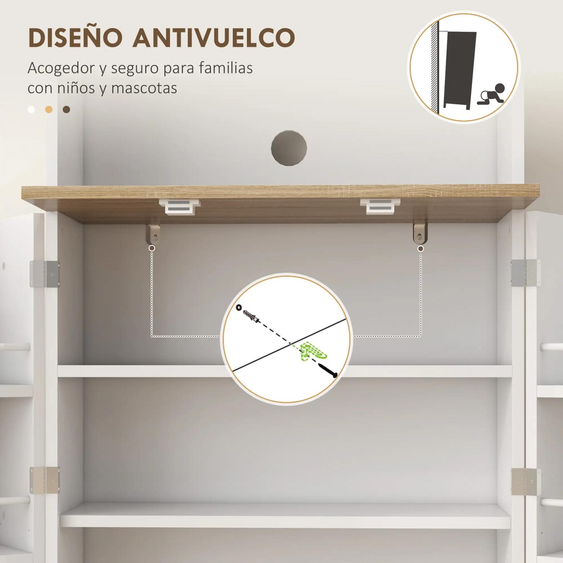 - RESISTENTE AL USO DIARIO: Hecho de melamina y con sistema anti-vuelco, este armario de cocina almacenaje es estable y seguro. El cierre magnético de las puertas garantiza que se cierren de forma suave y segura
