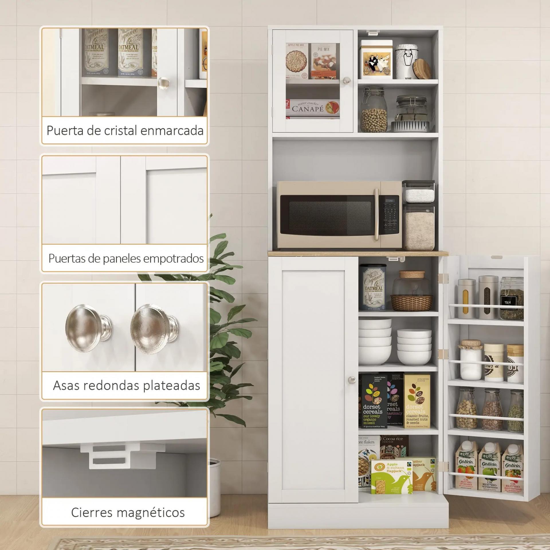 TODO EN ORDEN, SIN ESTRÉS: Esta alacena con múltiples estantes y compartimentos, incluido un amplio espacio para microondas y 8 baldas en la puerta, mantendrás desde especias hasta cereales organizados y siempre a mano