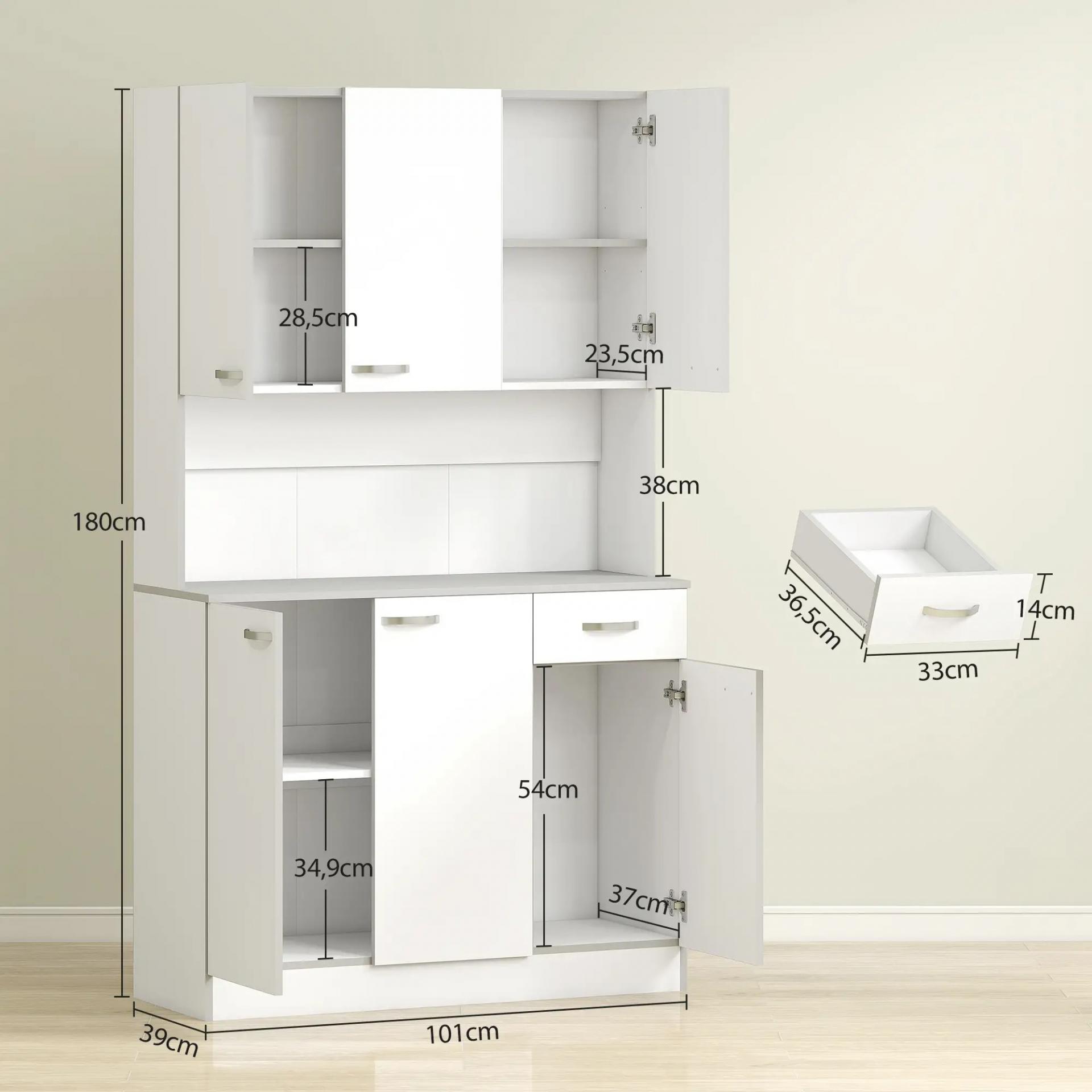 Alacena de Cocina Aparador de Comedor con 1 Cajón 6 Puertas y Estantes Ajustable Estilo Moderno 101x39x180 cm Blanco