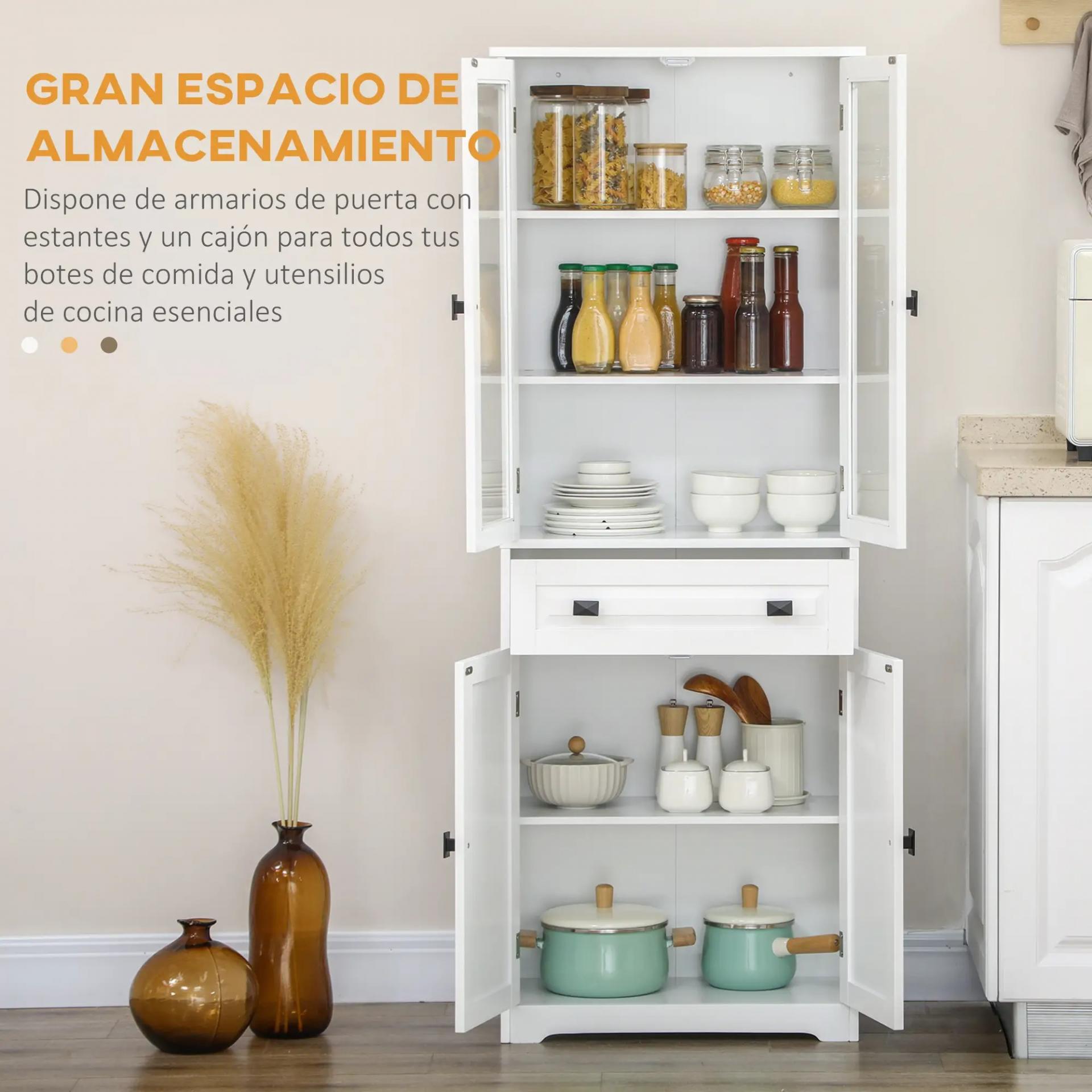 - ALMACENAJE AMPLIO Y FLEXIBLE: Esta alacena incluye dos armarios cerrados y un cajón espacioso para vajilla, ollas y básicos diarios. Sus estantes interiores regulables se adaptan a distintos tamaños y las puertas mantienen todo protegido del polvo
