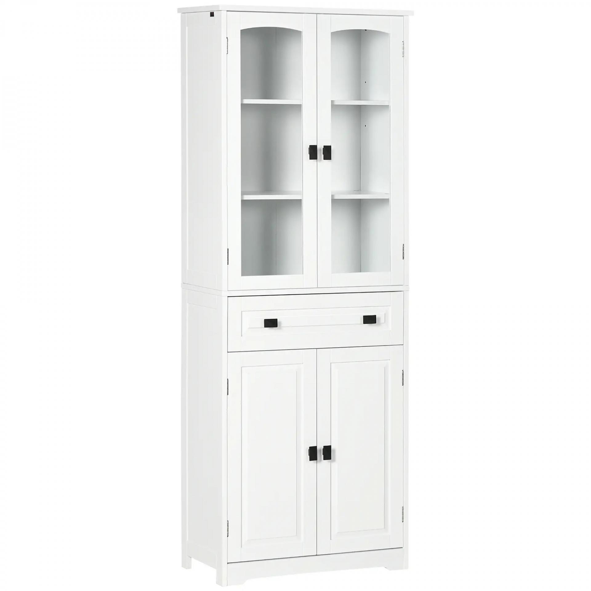 Alacena de Cocina con 2 Puertas de Vidrio 2 Estantes Ajustables y Cajón para Salón Comedor 60x30x160 cm Blanco