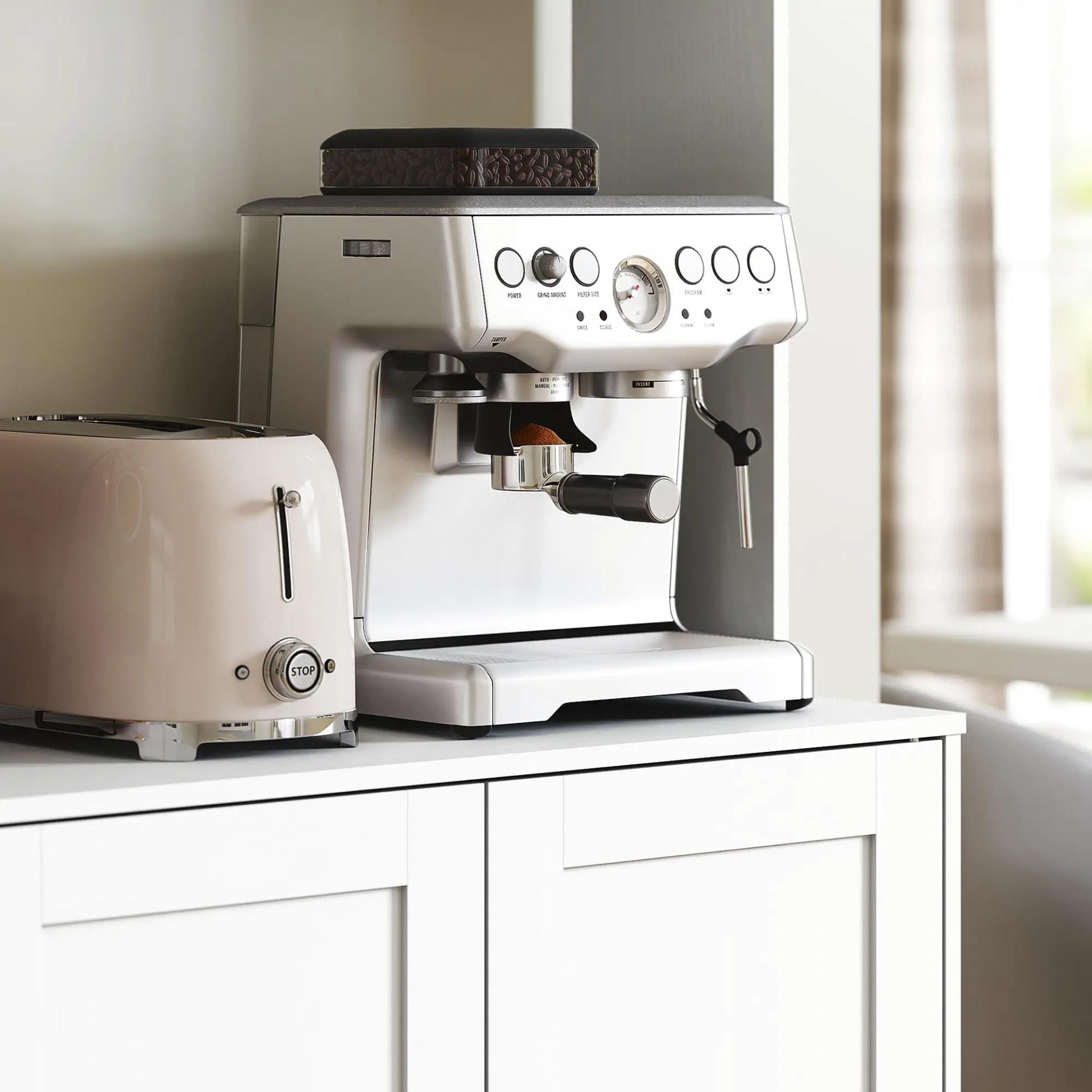 OPCIONES VERSÁTILES DE ALMACENAJE: Este armario de cocina incluye cuatro armarios, dos estantes abiertos y una encimera amplia, permitiendo organizar menaje, alimentos y pequeños electrodomésticos como microondas, tostadora, cafetera, etc.