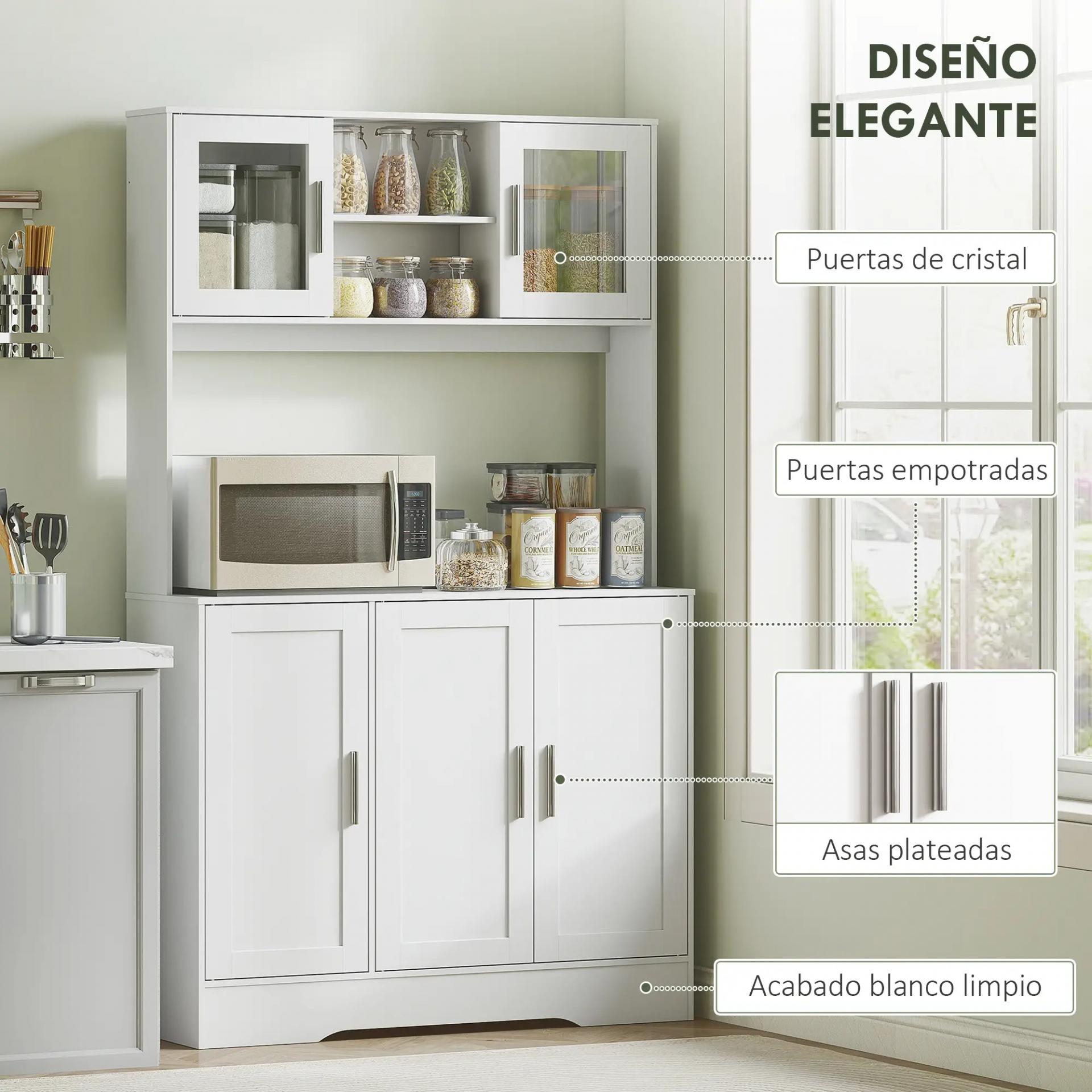 - DISEÑO ELEGANTE: Esta alacena de cocina combina acabado blanco y tiradores plateados para adaptarse a cualquier estilo. Las puertas superiores de cristal templado mantienen el interior visible y protegido del polvo, aportando ligereza visual