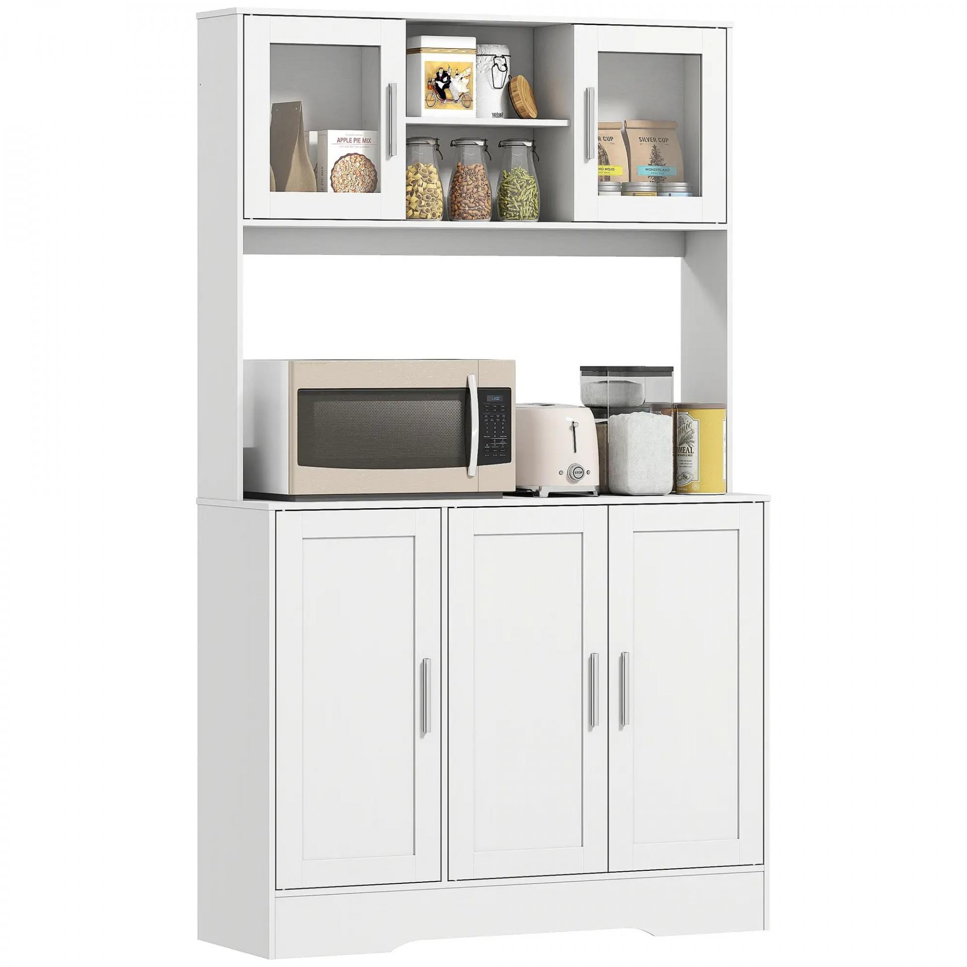 Alacena de Cocina con 2 Puertas de Vidrio Encimera Amplia para Microondas Estantes Ajustables Blanco