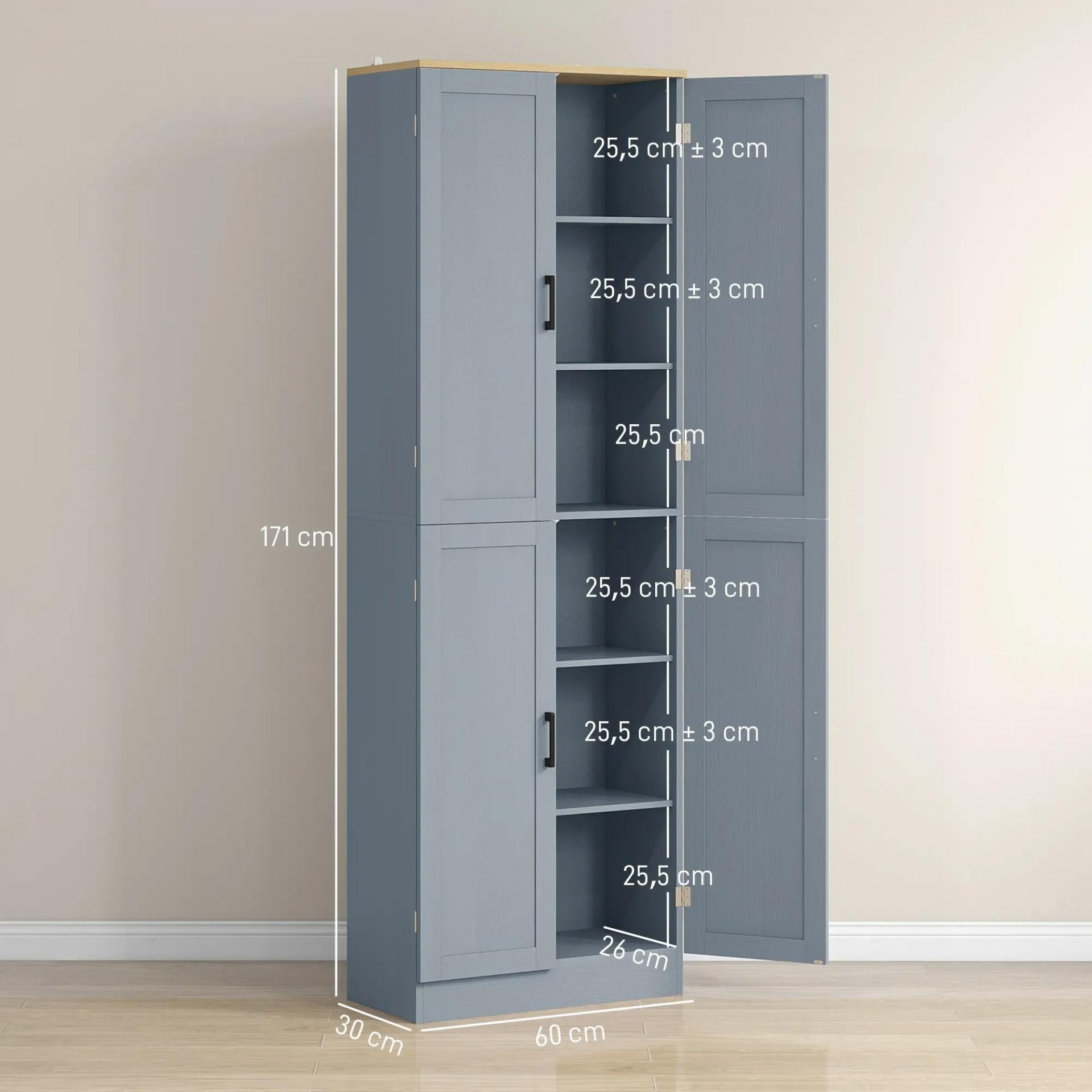 Alacena de Cocina Armario de Almacenaje Multifuncional con 4 Puertas y Estantes Ajustables 60x30x171 cm Gris