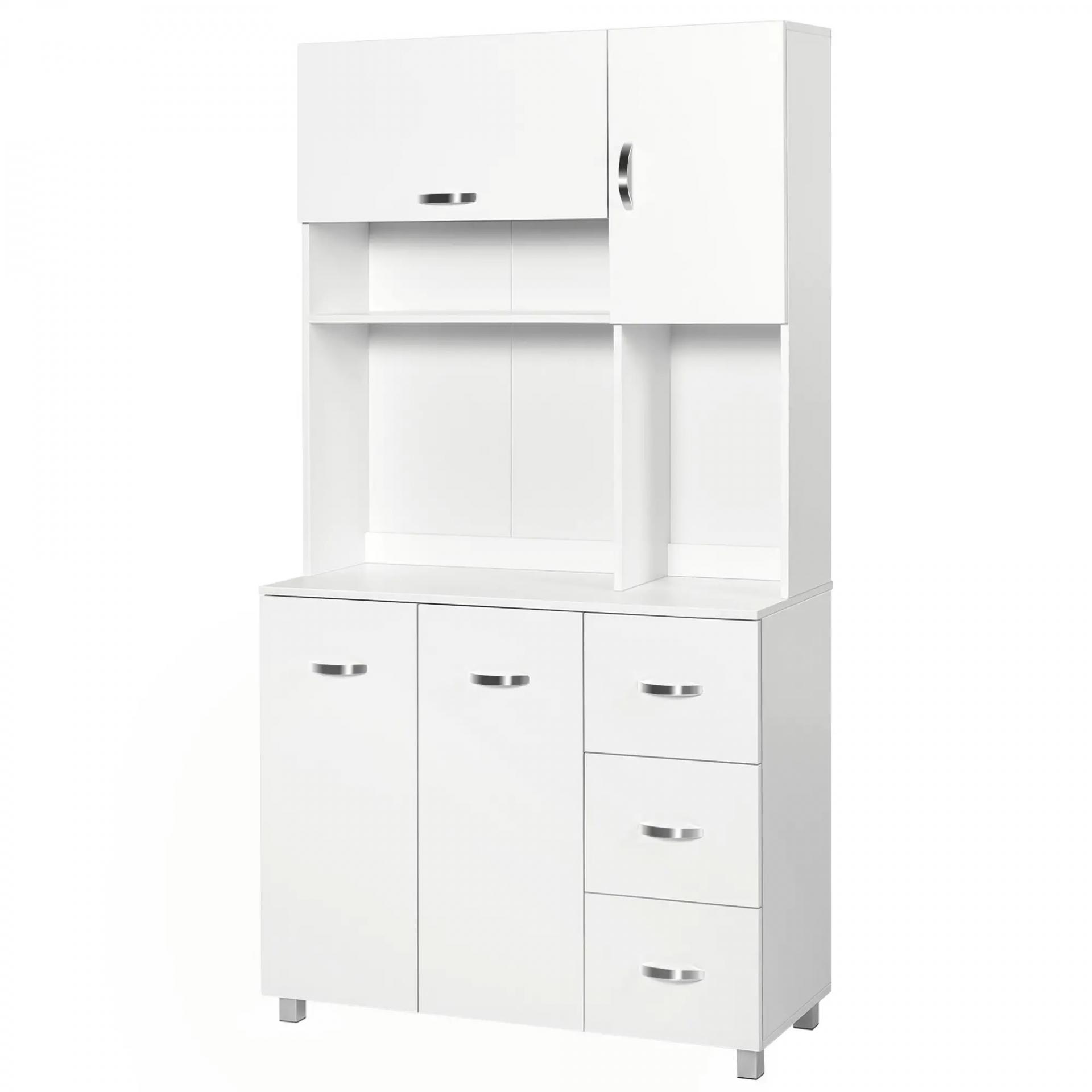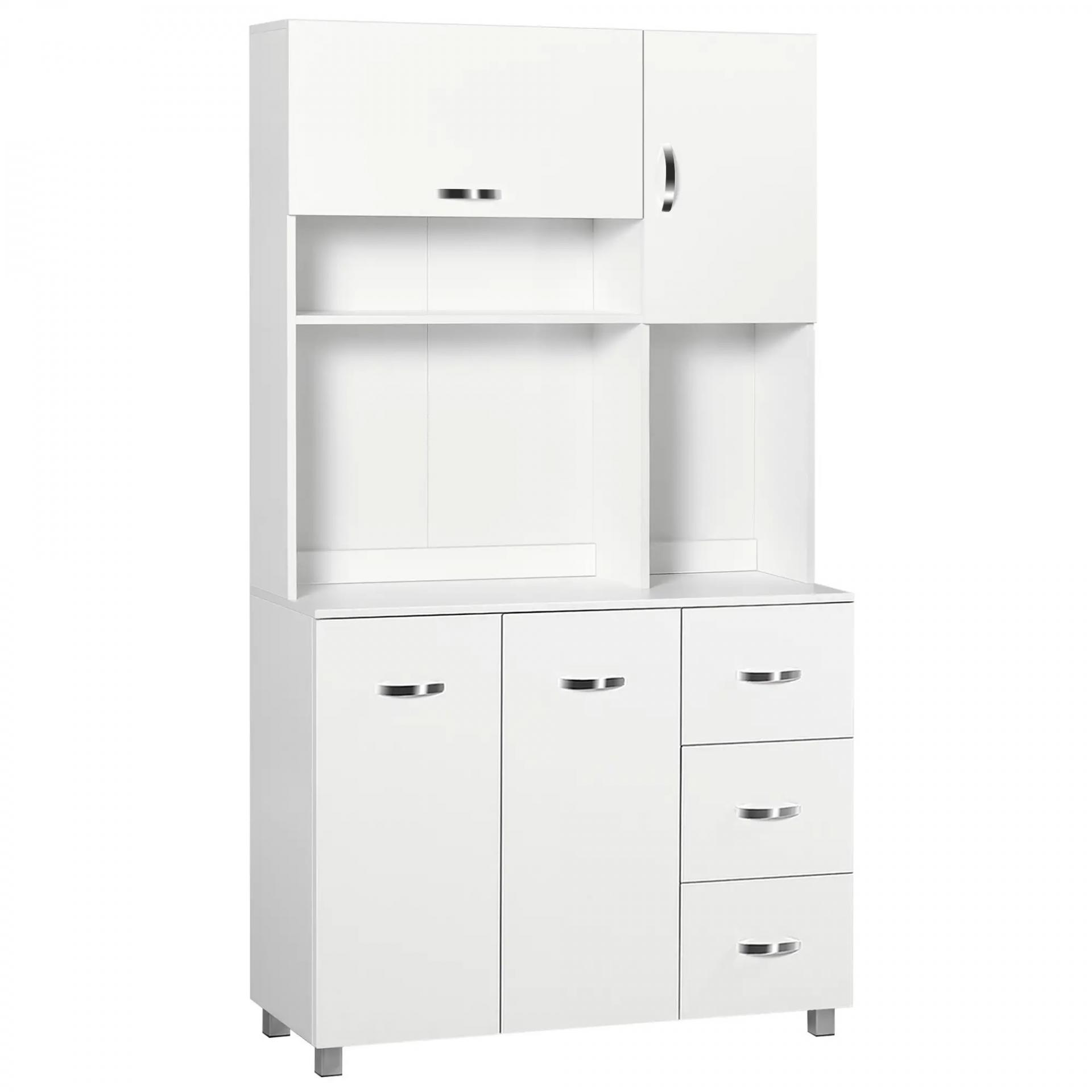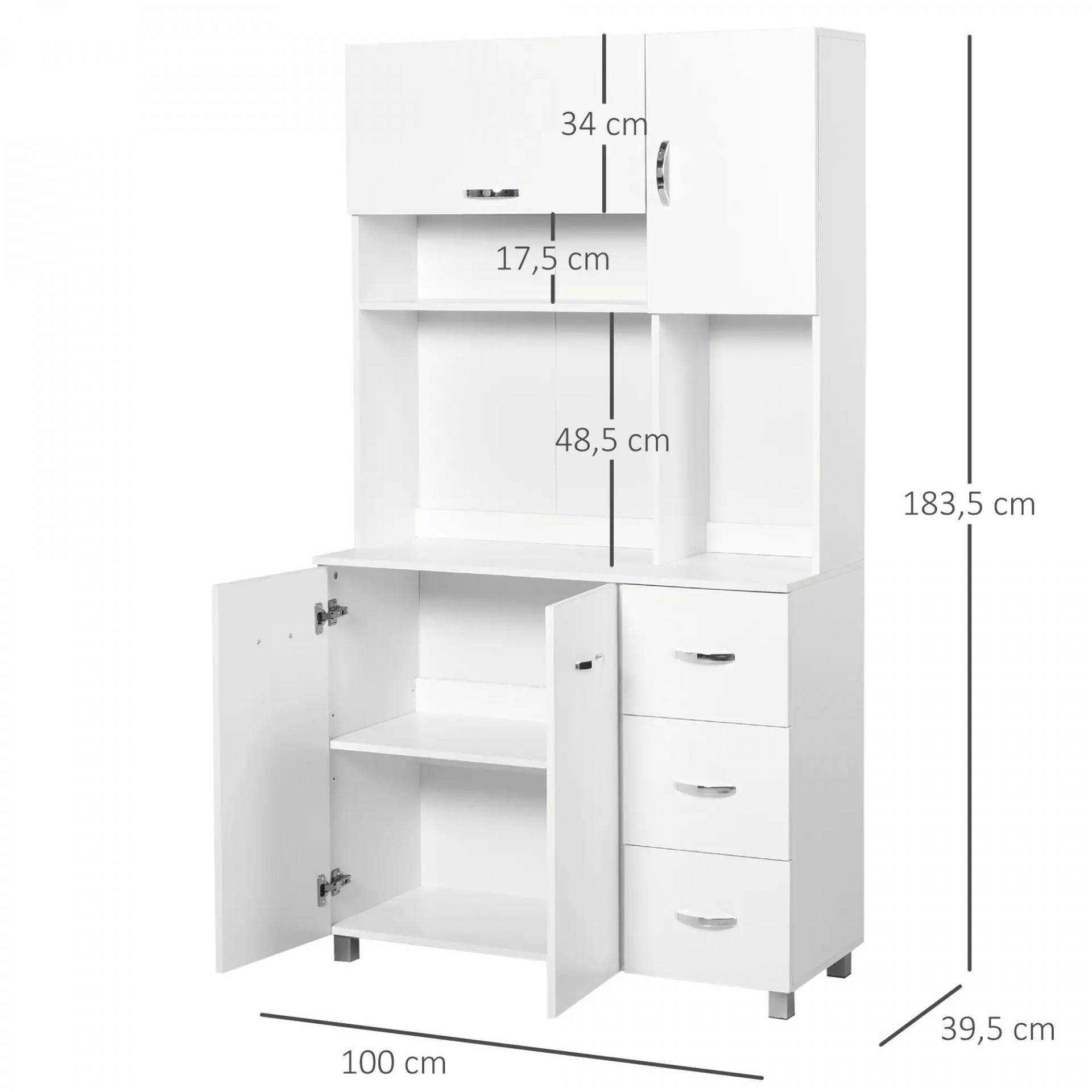 Armario de Cocina Moderno Mueble Auxiliar con 3 Cajones 4 Puertas y Estantes Ajustables 100x39,5x183,5 cm Blanco
