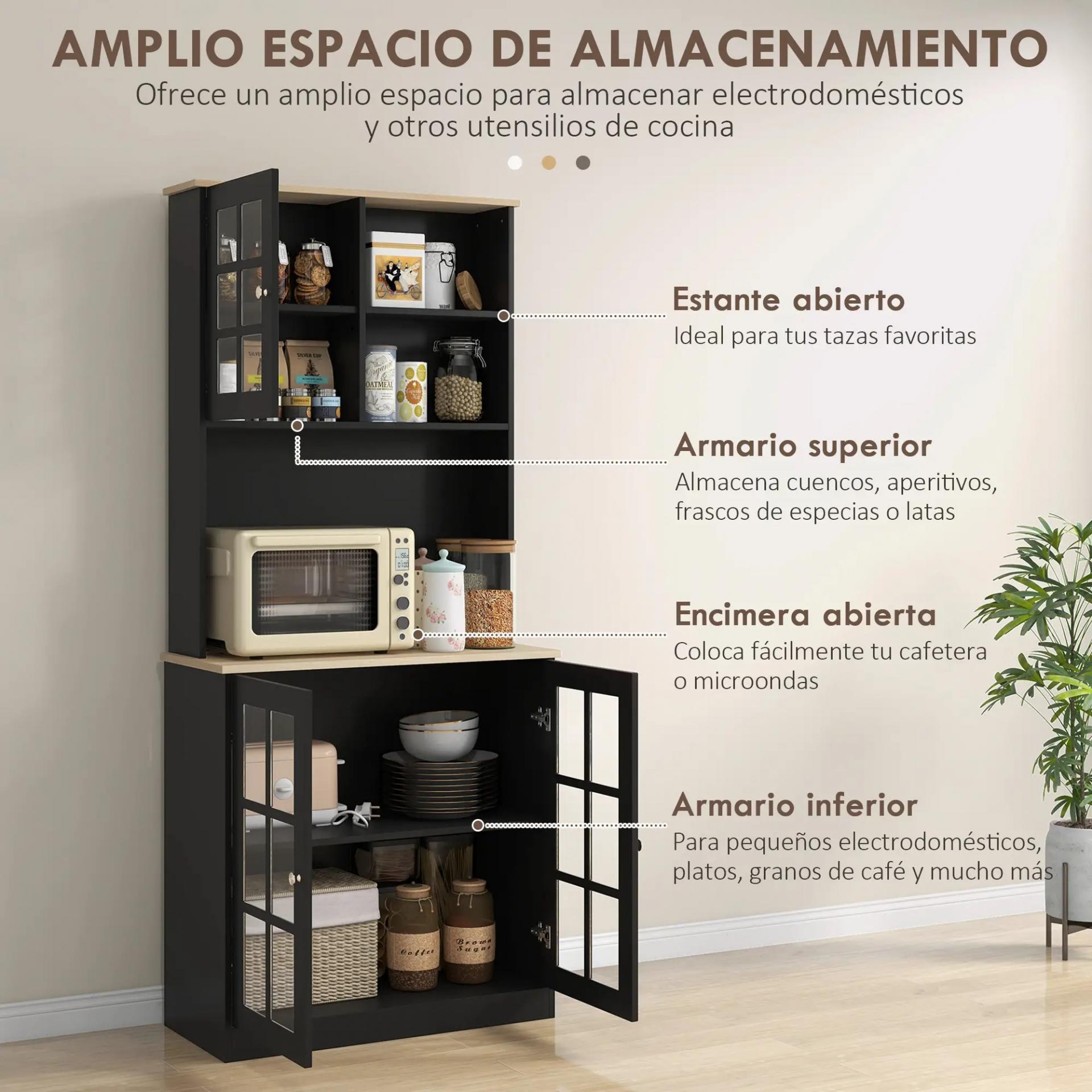 Alacena de Cocina con Estantes y Puertas de Vidrio para Pequeños Electrodomésticos 80x37x183 cm Negro