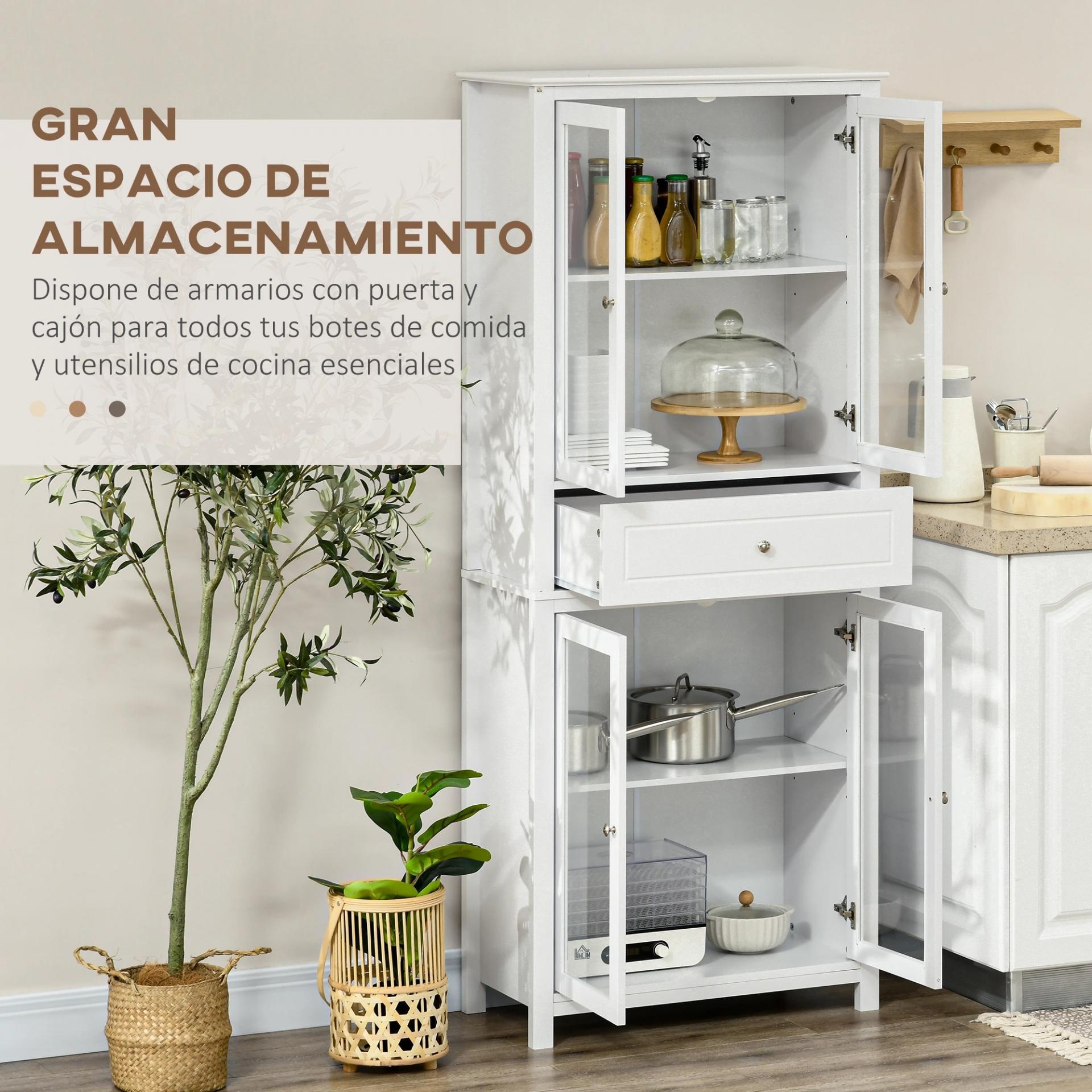 - FUNCIONALIDAD Y VERSATILIDAD: Si pasas mucho tiempo en la cocina, seguro que quieres un mueble en el que puedas ver las cosas desde fuera y que denote estilo. Por lo que este mueble despensa con puertas de cristal es perfecto. Además, gracias a su bonito diseño también lo puedes usar como armario en el salón o estantería para tu estudio u oficina