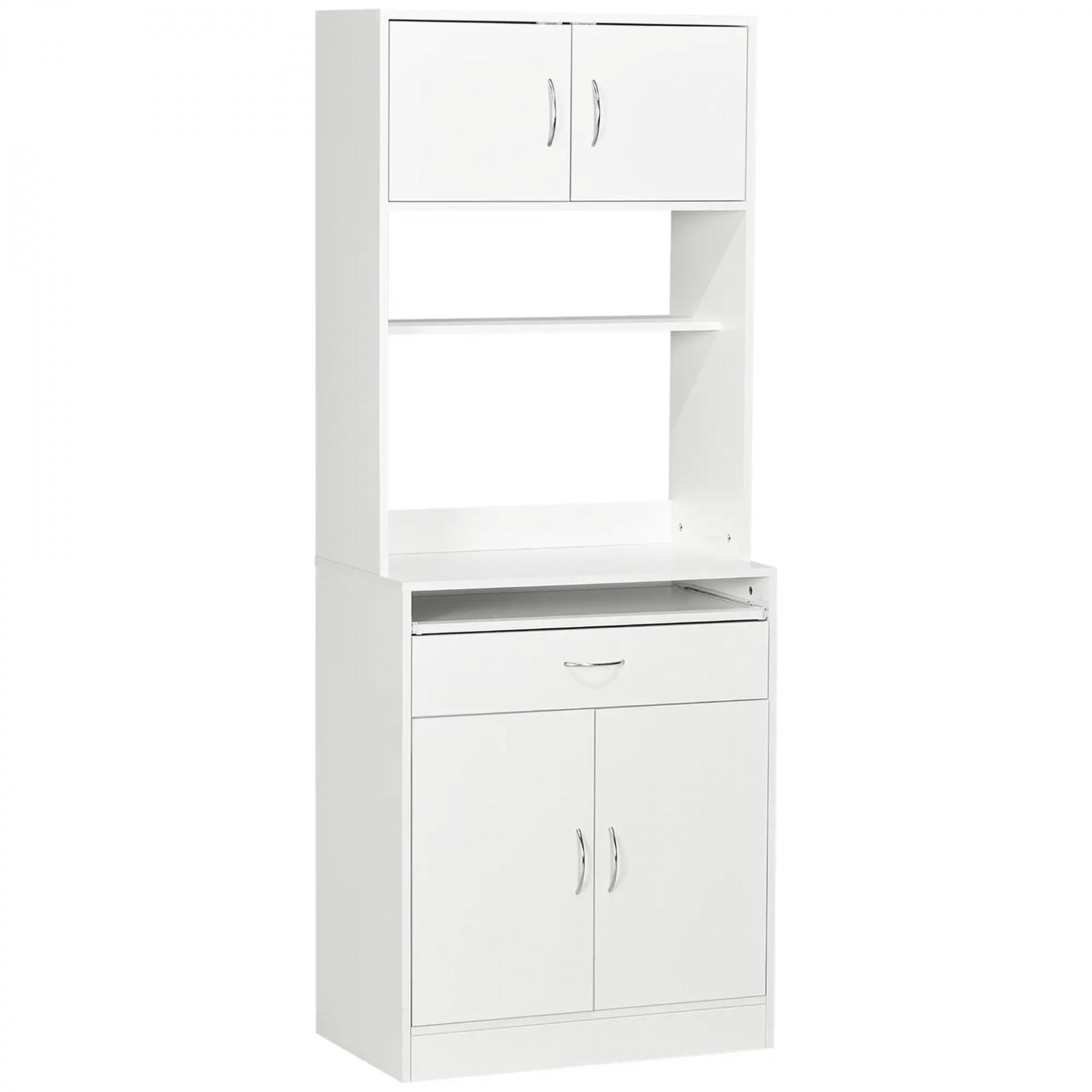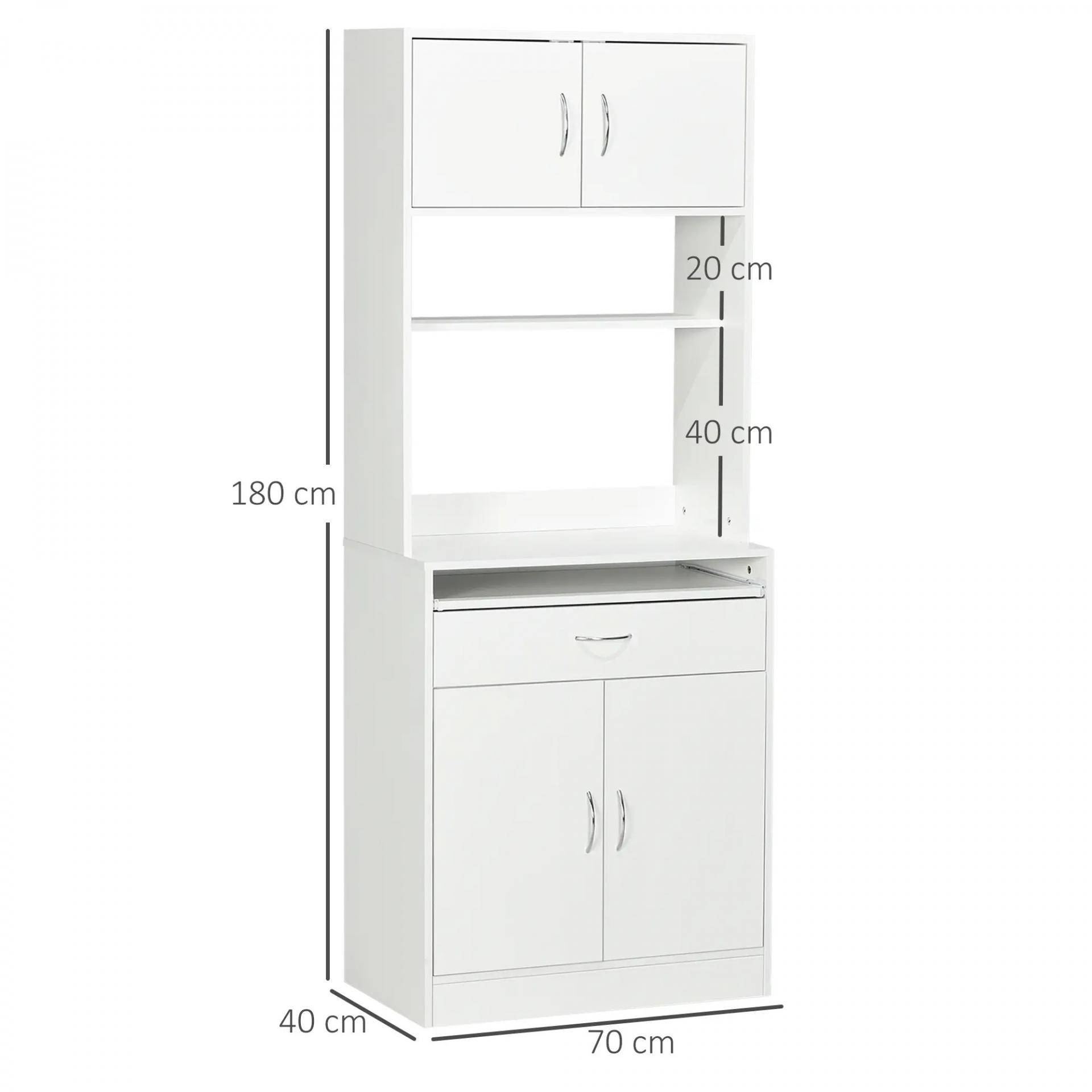 Alacena de Cocina Aparador de Comedor con 4 Puertas Bandeja Extraíble Estante Ajustable Cajón 70x40x180 cm Blanco
