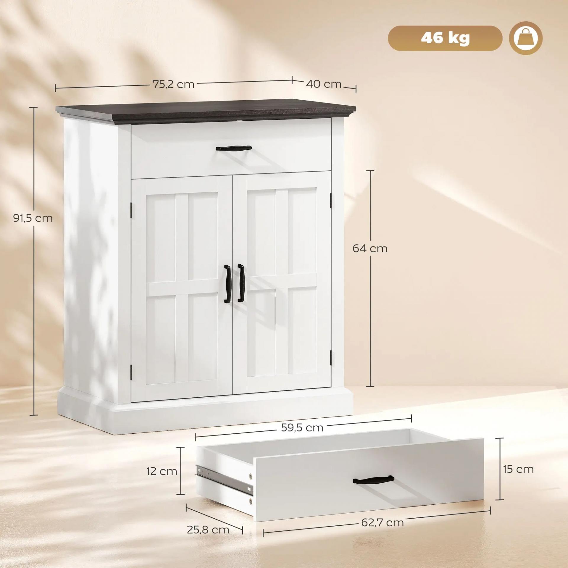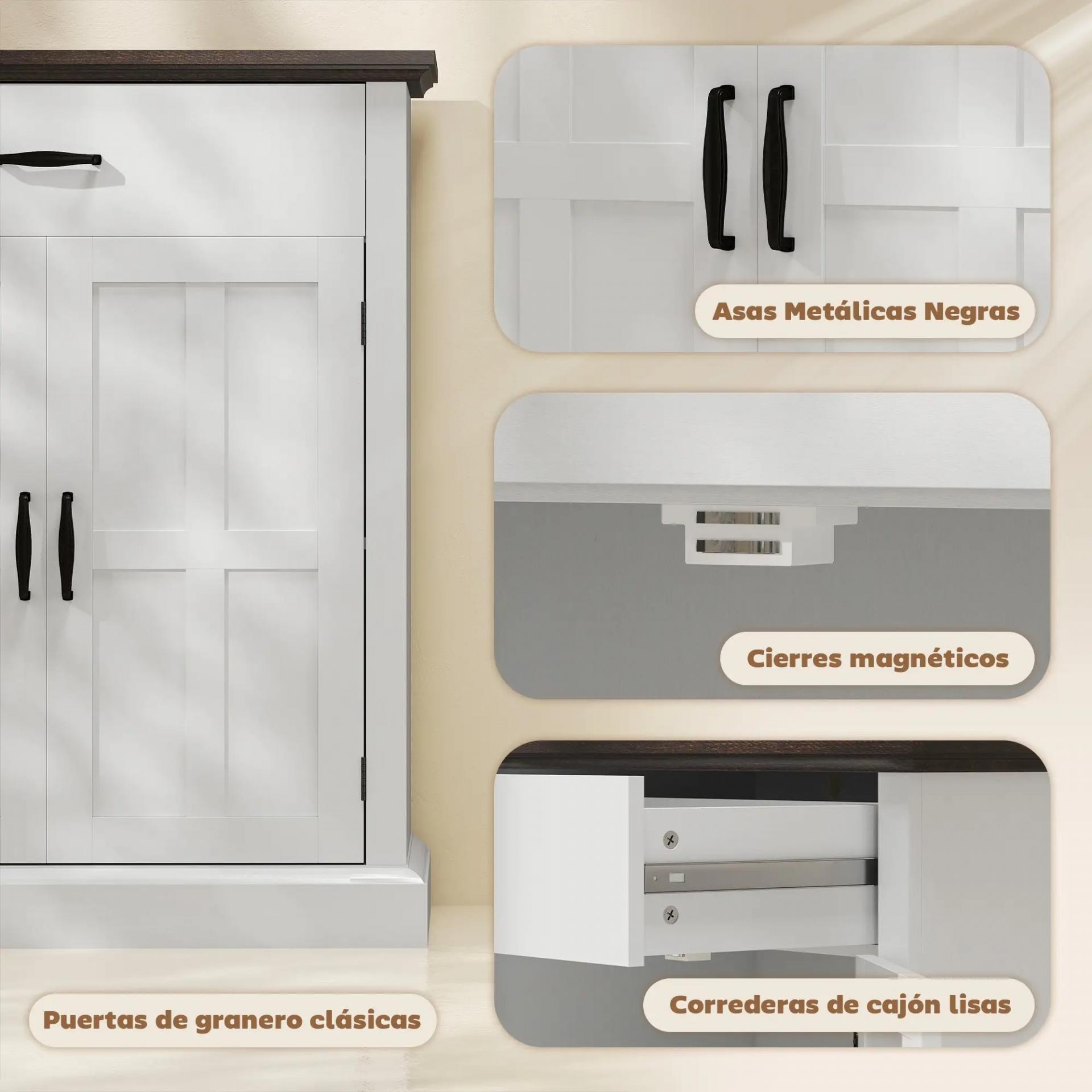 - AMPLIA ÁREA PARA UNA ESTACIÓN DE CAFÉ: Aprovecha la gran superficie de este aparador blanco para colocar la cafetera y la tetera. Además, el amplio cajón es ideal para almacenar granos y filtros, y la estantería ajustable organiza tazas y copas tras las puertas