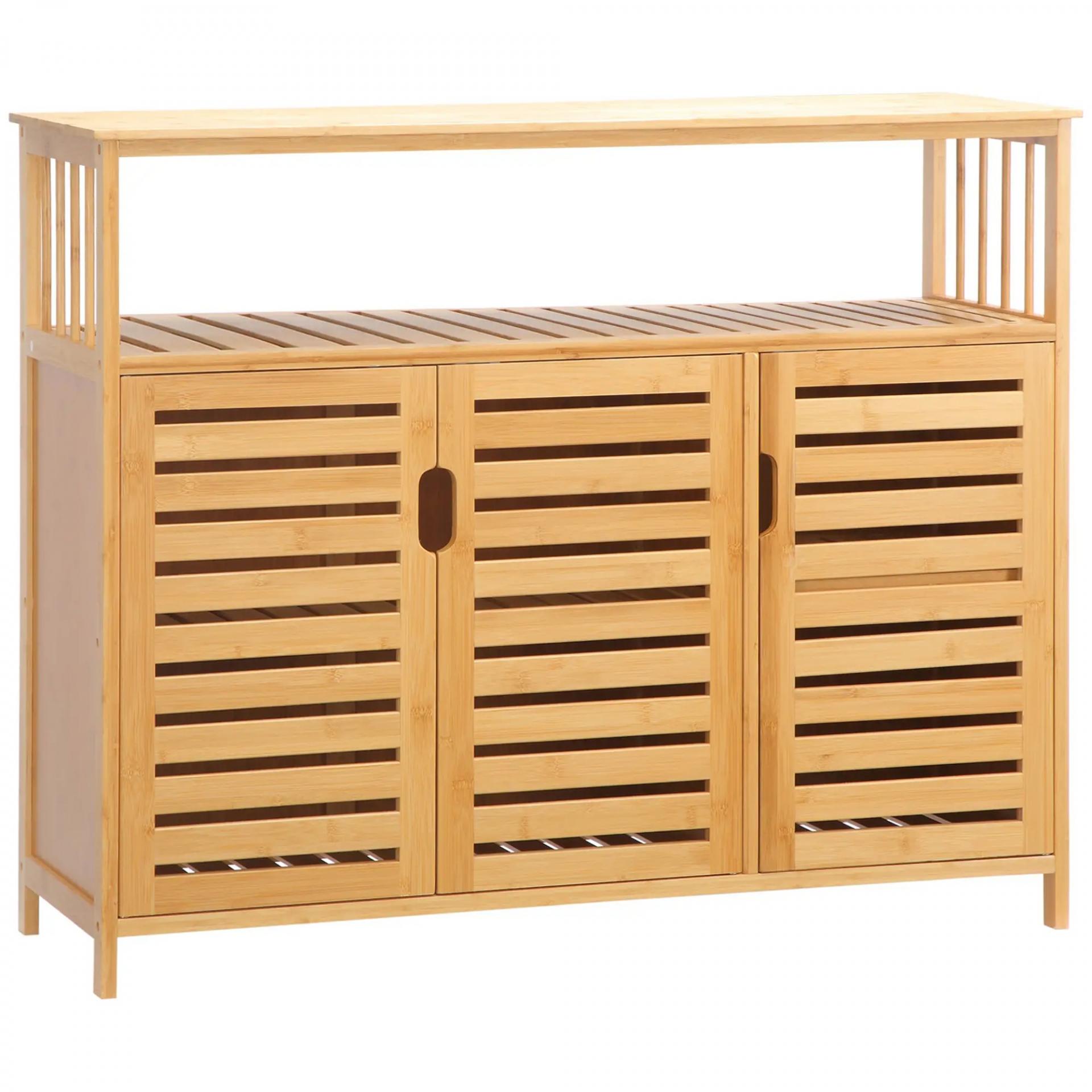 Aparador para Salón de Bambú con 3 Puertas Ranuradas Estantes para Comedor Cocina Entrada Natural 100x35x82 cm