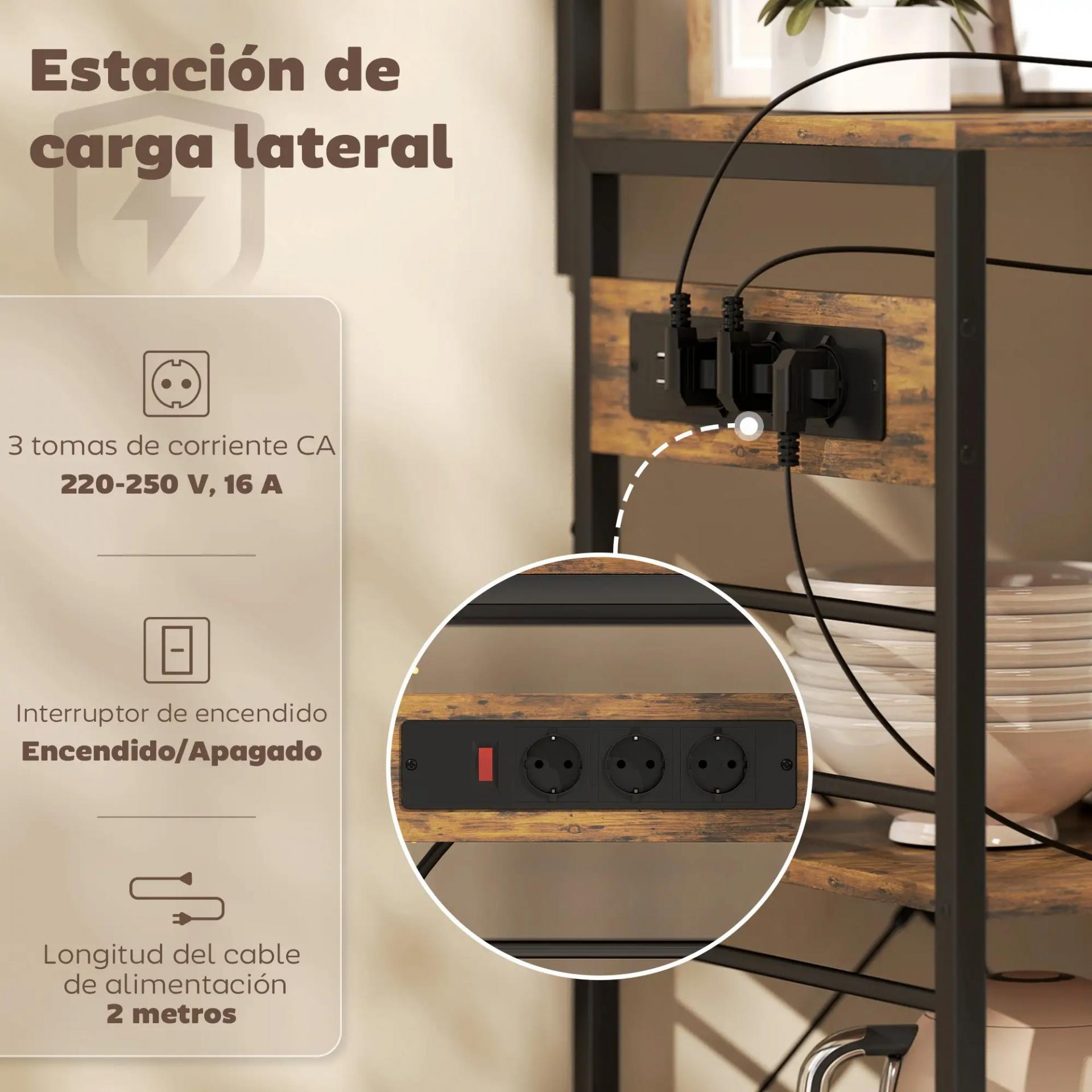 - ESTACIÓN ELÉCTRICA SEGURA: Esta estantería de cocina cuenta con tres enchufes con interruptor lateral para conectar varios electrodomésticos a la vez. Con un solo toque podrás encender o apagar todo, garantizando seguridad y comodidad en la cocina