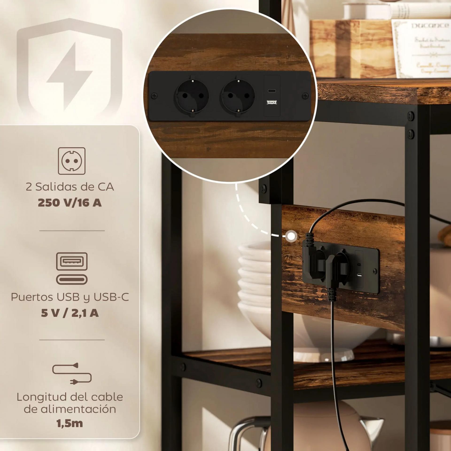 - REGLETA INTEGRADA: Este mueble auxiliar de cocina incluye dos enchufes, un puerto USB y un USB-C con cable de 1,5 m. Perfecta para conectar la cafetera, tostadora o freidora de aire en tu cocina sin complicaciones ni buscar enchufes adicionales