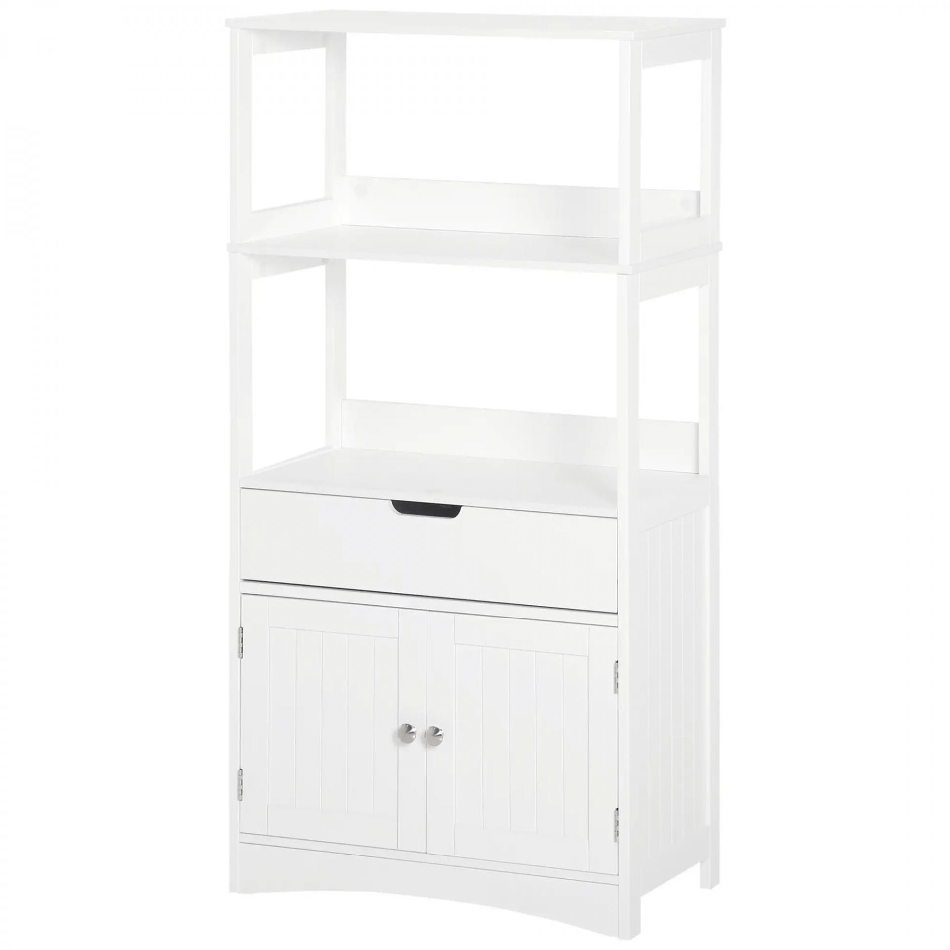 Armario de Baño con 3 Estantes Cajón y 2 Puertas Mueble de Almacenamiento de Suelo Moderno para Cocina Dormitorio Salón 60x33x122,5 cm Blanco