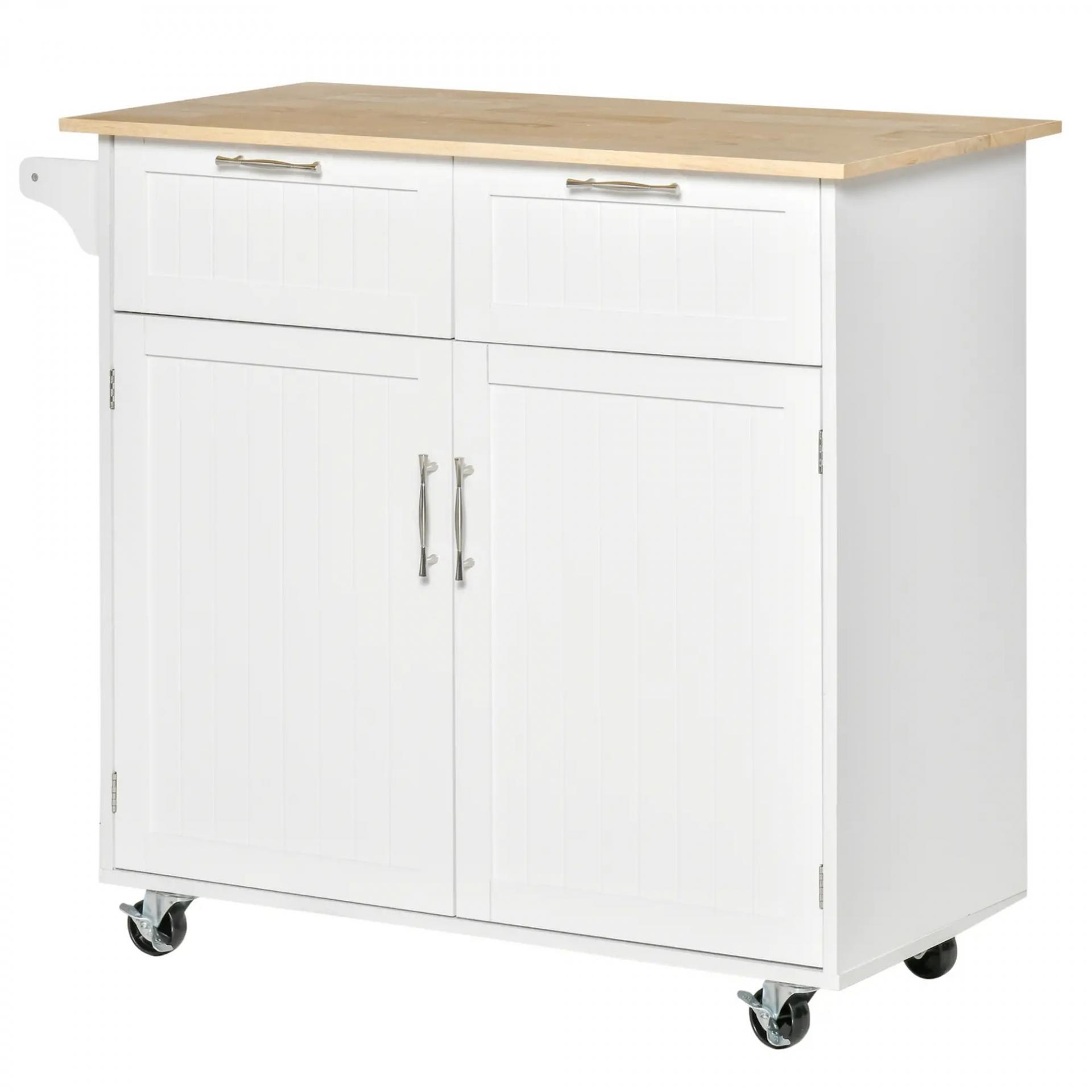 Mueble Auxiliar de Cocina con Ruedas 2 Cajones 2 Puertas Estante Ajustable y Toallero 104x46x91 cm Blanco