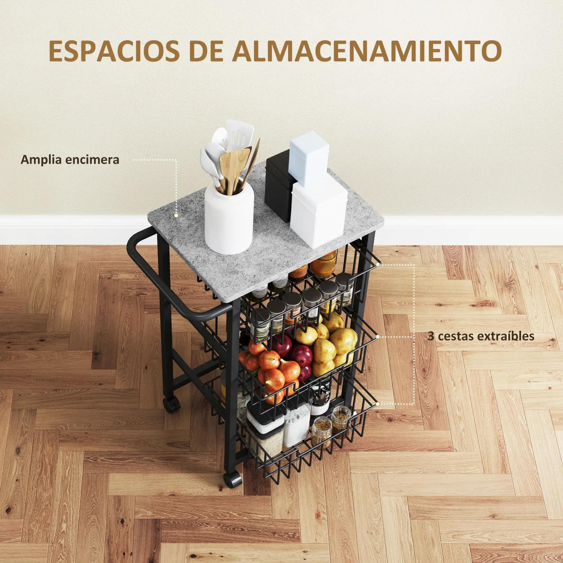 - ALMACENAMIENTO CONVENIENTE: Este práctico verdulero cuenta con ruedas y tres cestas deslizables, perfectas para mantener ordenados vegetales, frutas, snacks y frascos de condimentos