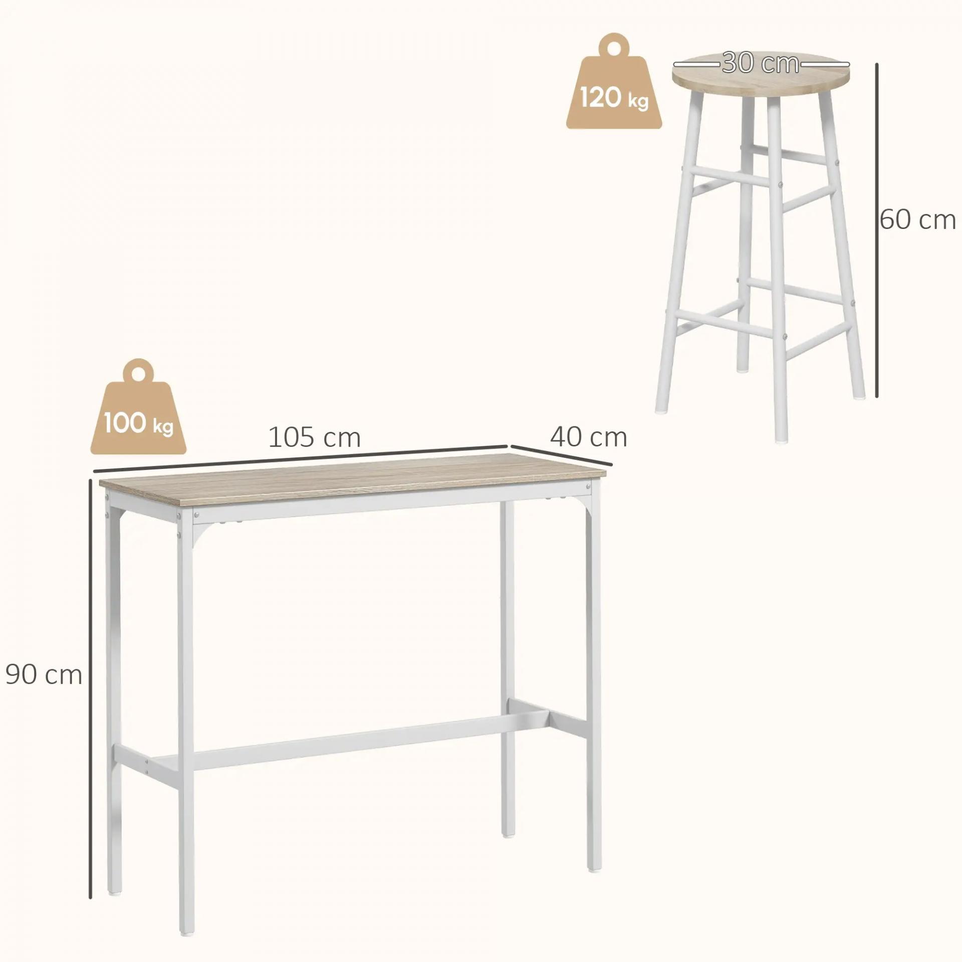 - - MEDIDAS TOTALES: La mesa de este conjunto de bar mide 105x40x90 cm (LxANxAL) y los taburetes miden Ø30x60 cm (DxAL). Peso máximo soportado: 120 kg