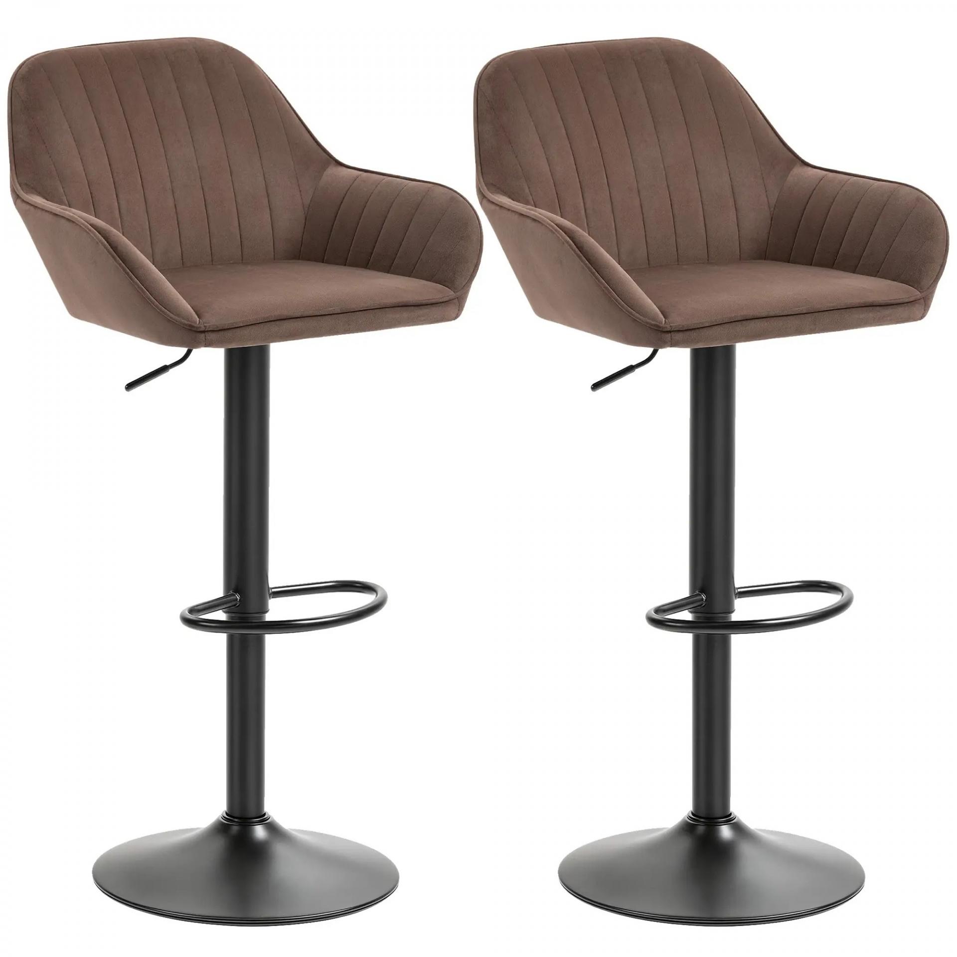 Juego de 2 Taburetes de Bar Giratorios Altura Ajustable 62-83 cm Tapizada en Terciopelo Respaldo y Reposapiés Marrón