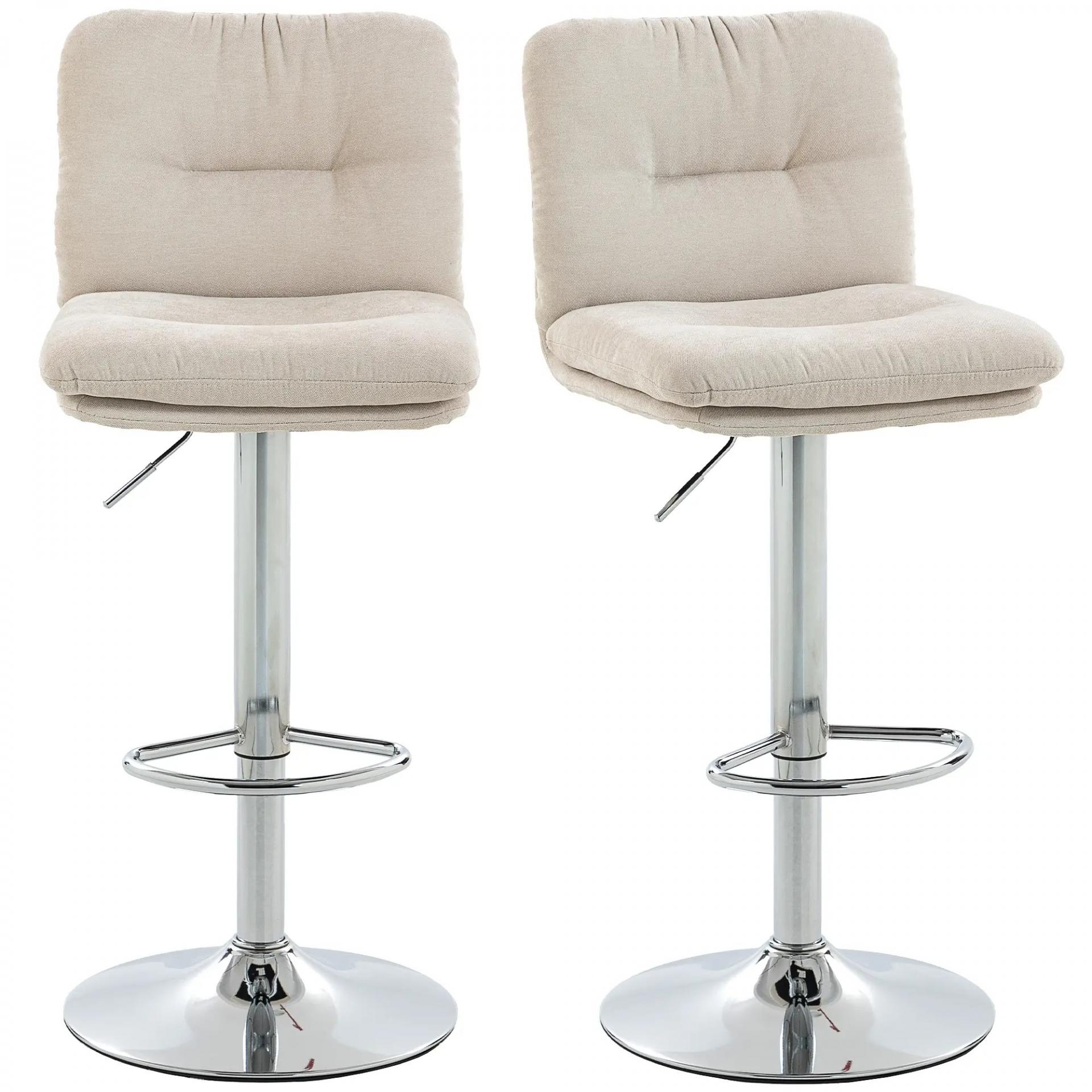Juego de 2 Taburetes Altos de Cocina Giratorios Tapizados de Lino con Altura Ajustable Respaldo y Reposapiés Beige