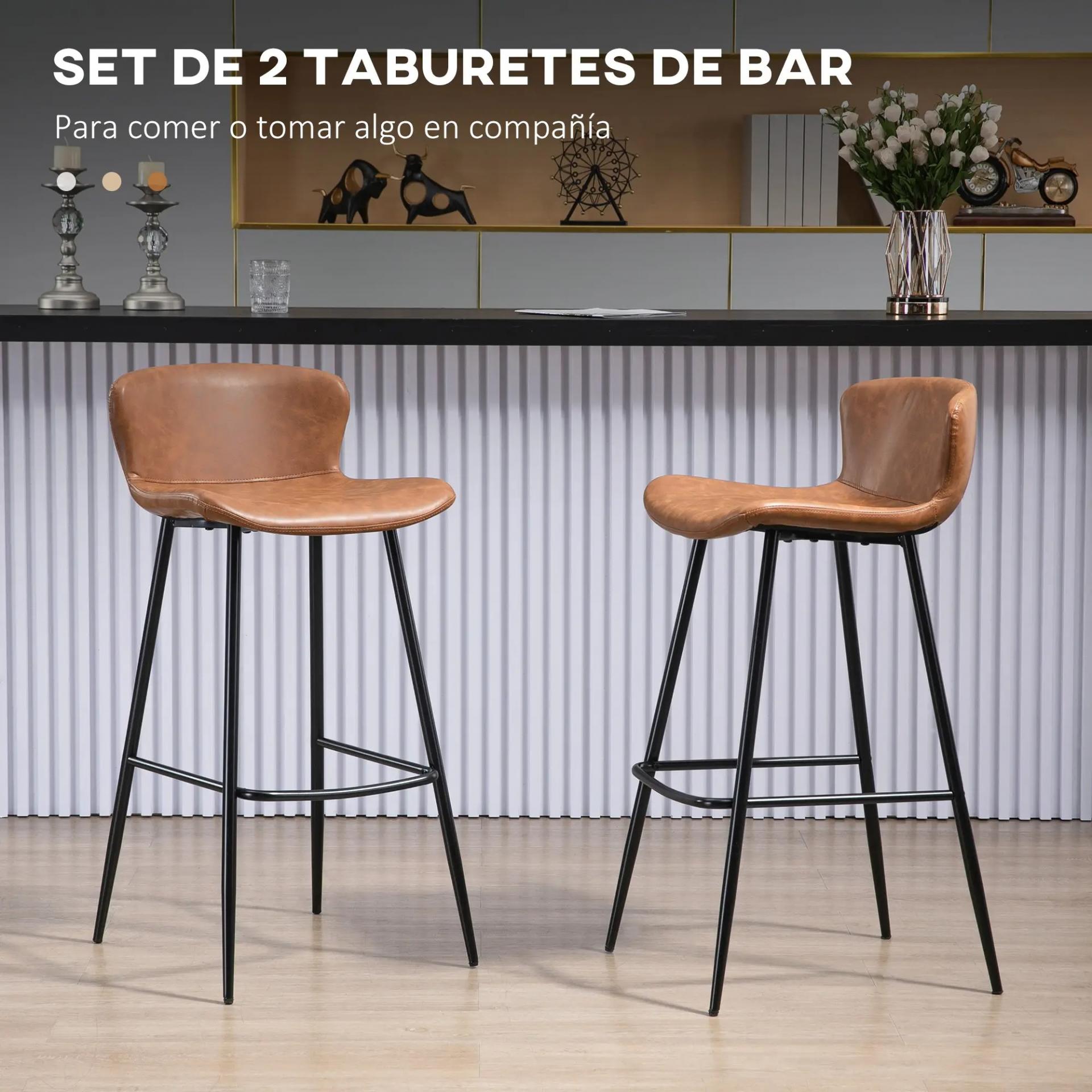 - ESTILO VINTAGE: Conjunto de 2 taburetes de bar con un diseño vintage que añade carácter y encanto a tu interior. El revestimiento de cuero sintético marrón con efecto envejecido ofrece un estilo retro moderno. Su apariencia elegante y sus líneas atemporales aportan un toque sofisticado a cualquier decoración