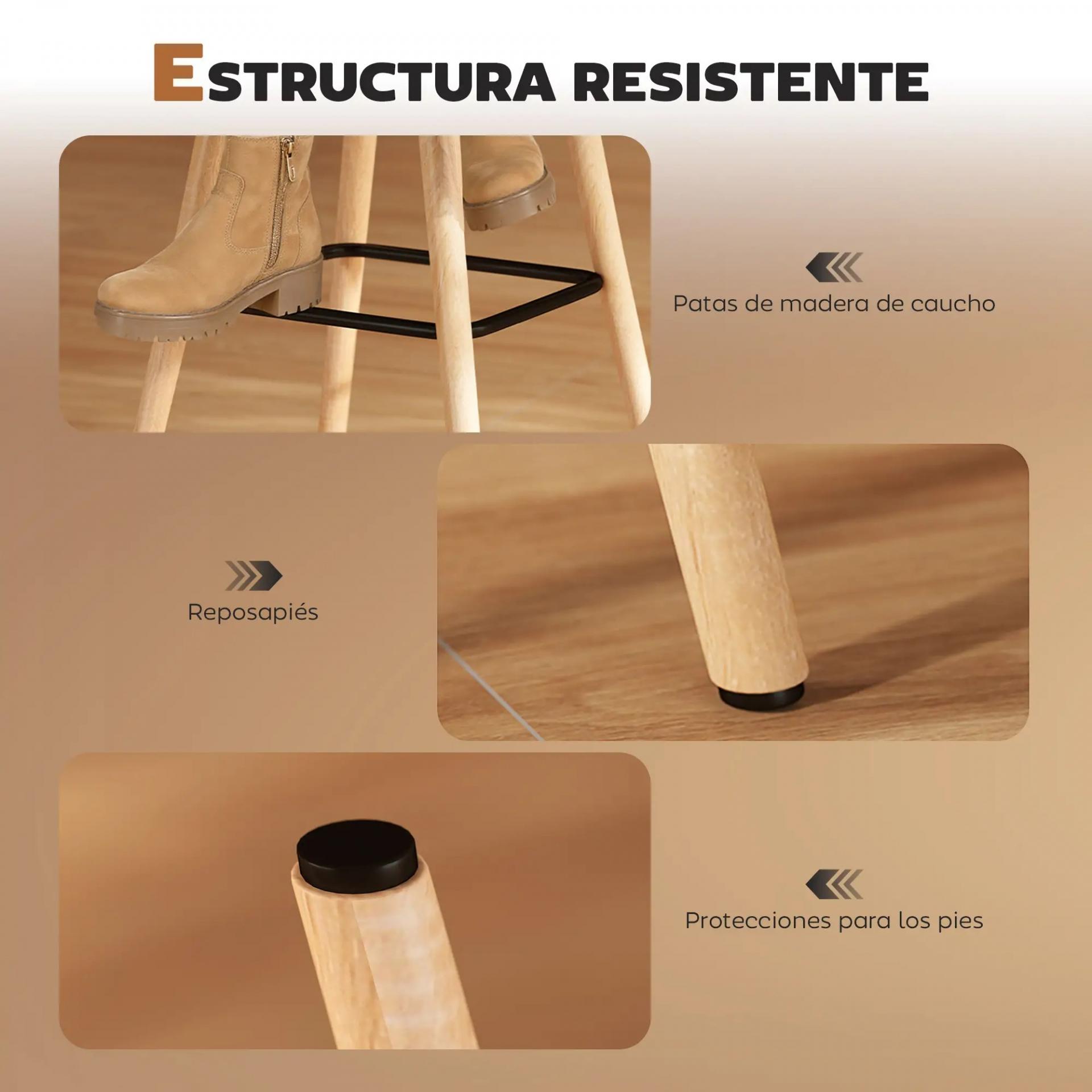 - CONJUNTO DE 2 TABURETES: Este set incluye dos taburetes altos con patas de madera resistentes y asiento acolchado, perfectos para aportar comodidad y estilo en la cocina, barra americana o zona de comedor